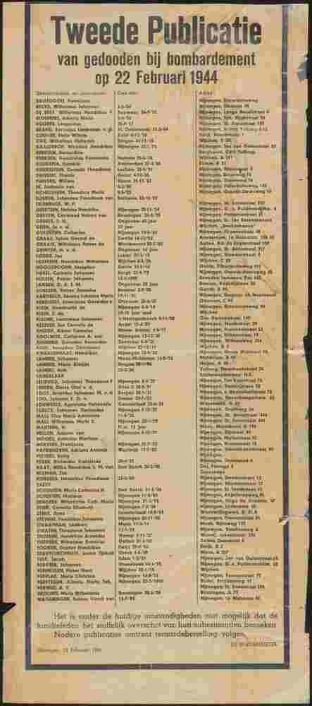 Tweede publicatie van gedooden bij het bombardement ...