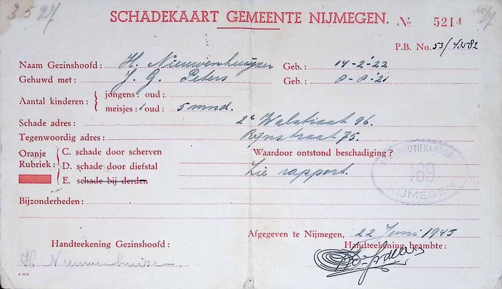 Schadekaart Gemeente Nijmegen op naam van dhr. Nieuw...