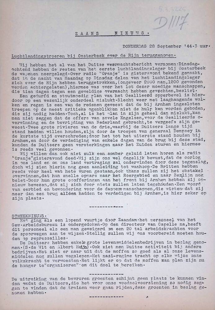 Zaans Nieuws ( Parool bulletin voor Zaandam en Omstr...