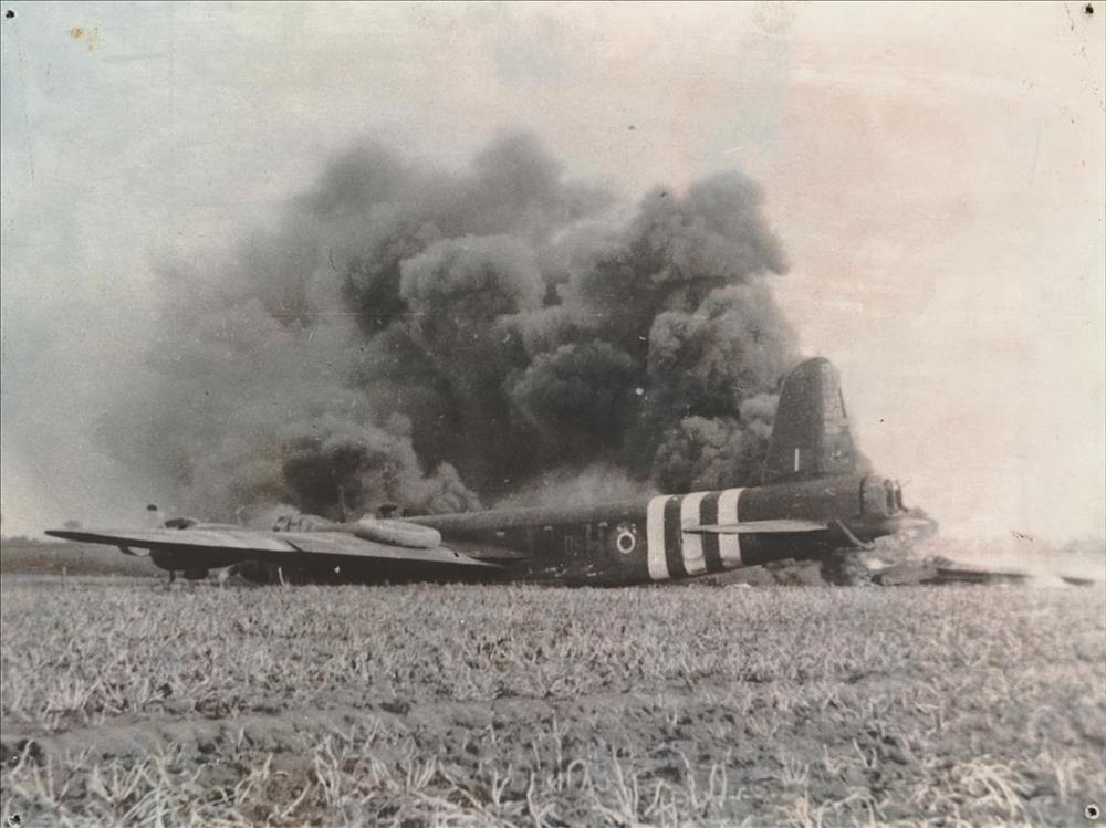 Foto twee Amerikaanse militairen in deuropening C-47...