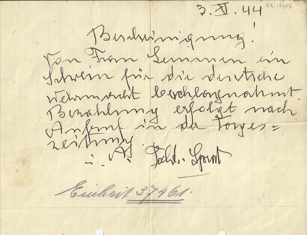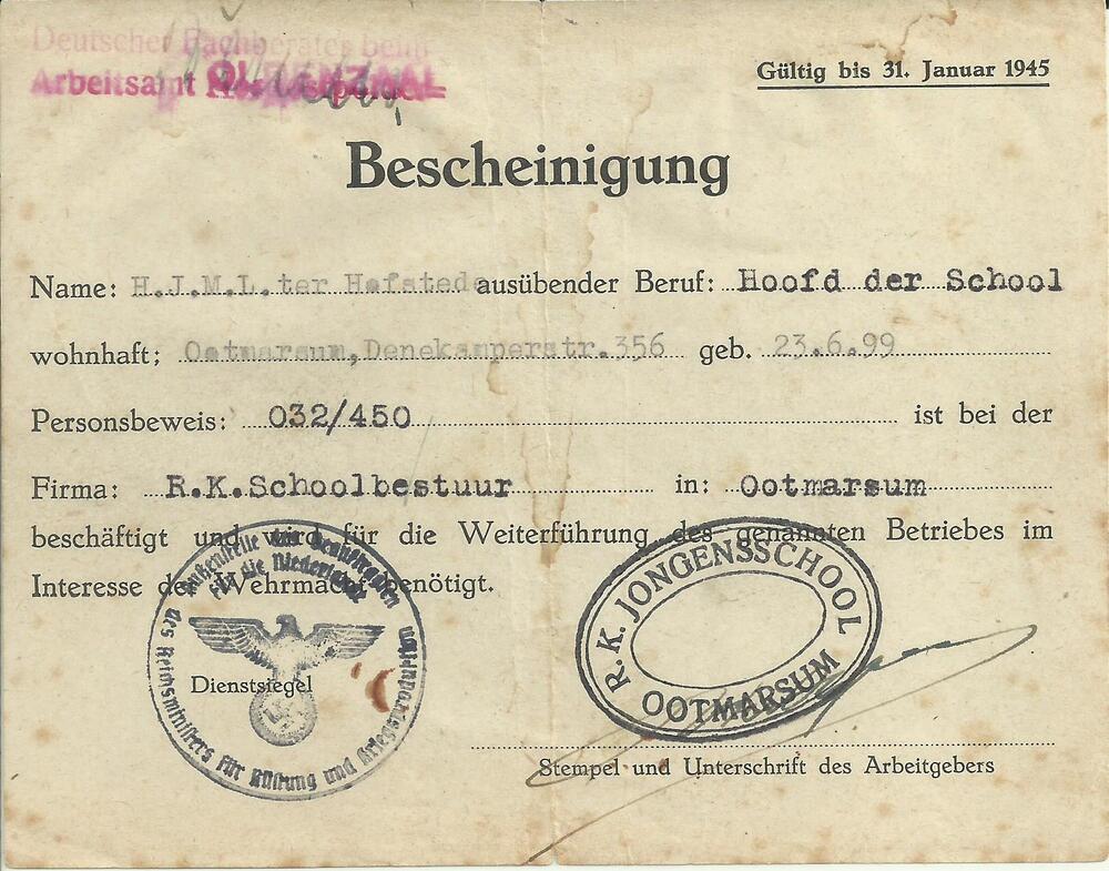 Bescheinigung op naam van ter Hofstede H.J.M.L