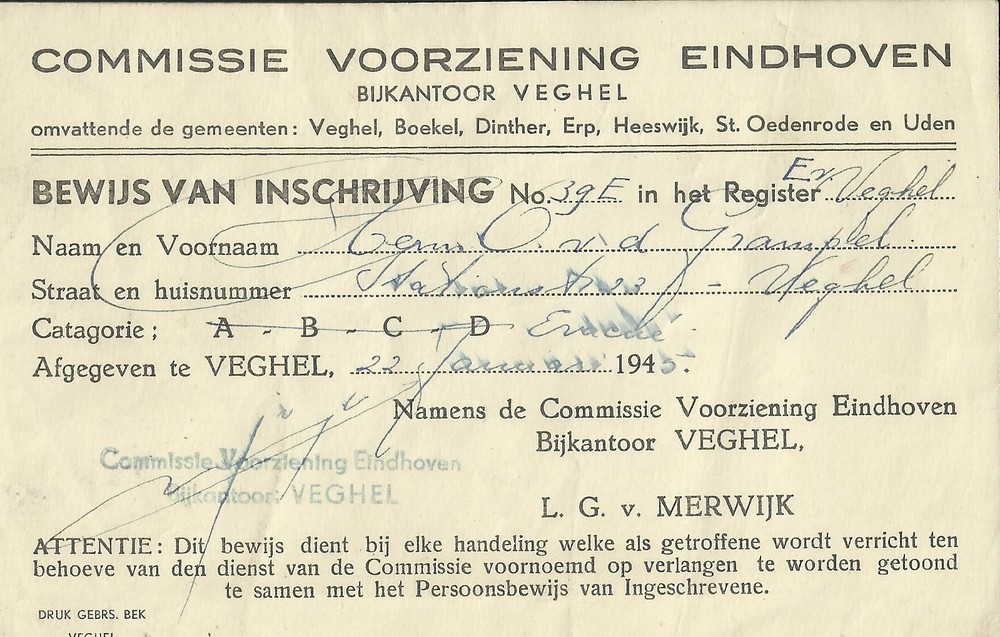 Bewijs van inschrijving, Commissie Voorziening Eindh...