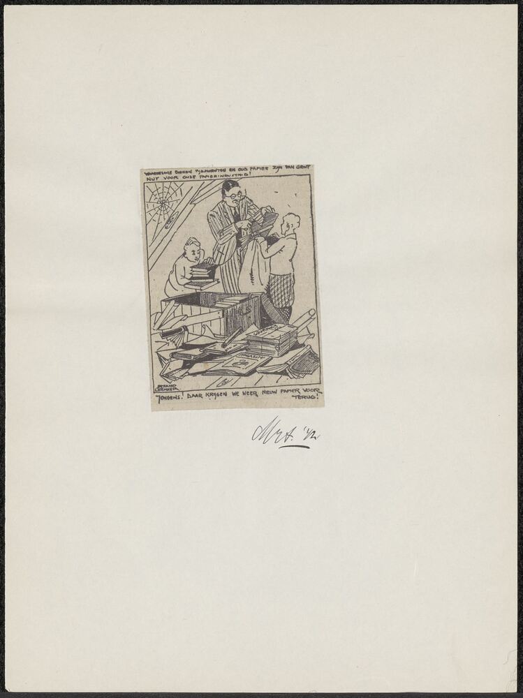 Vel met opgeplakte advertentie: "Waardelooze boeken,...