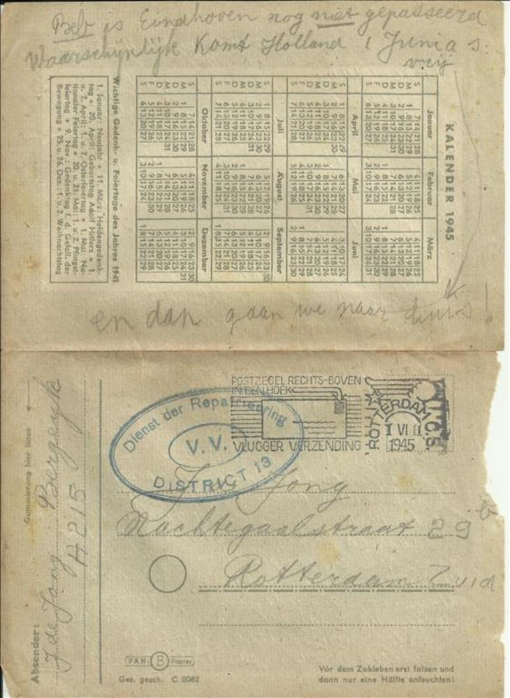 Brief van J. de Jong uit Bergeijk aan de J. de Jong ...