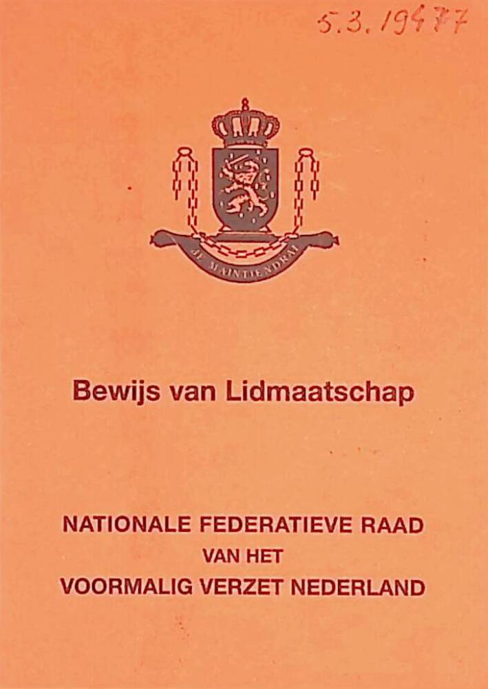 Bewijs van lidmaatschap Voormalig Verzet Nederland