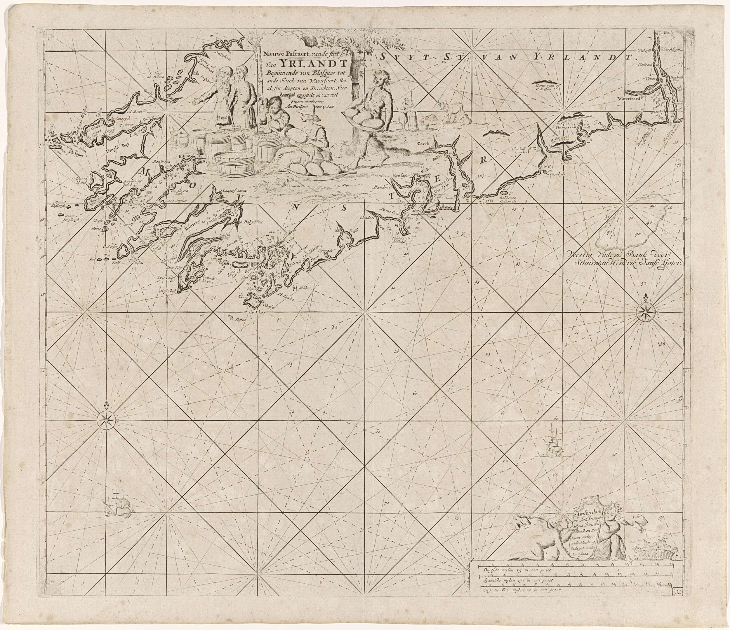 Kaart van een gedeelte van de zuidkust van Ierland