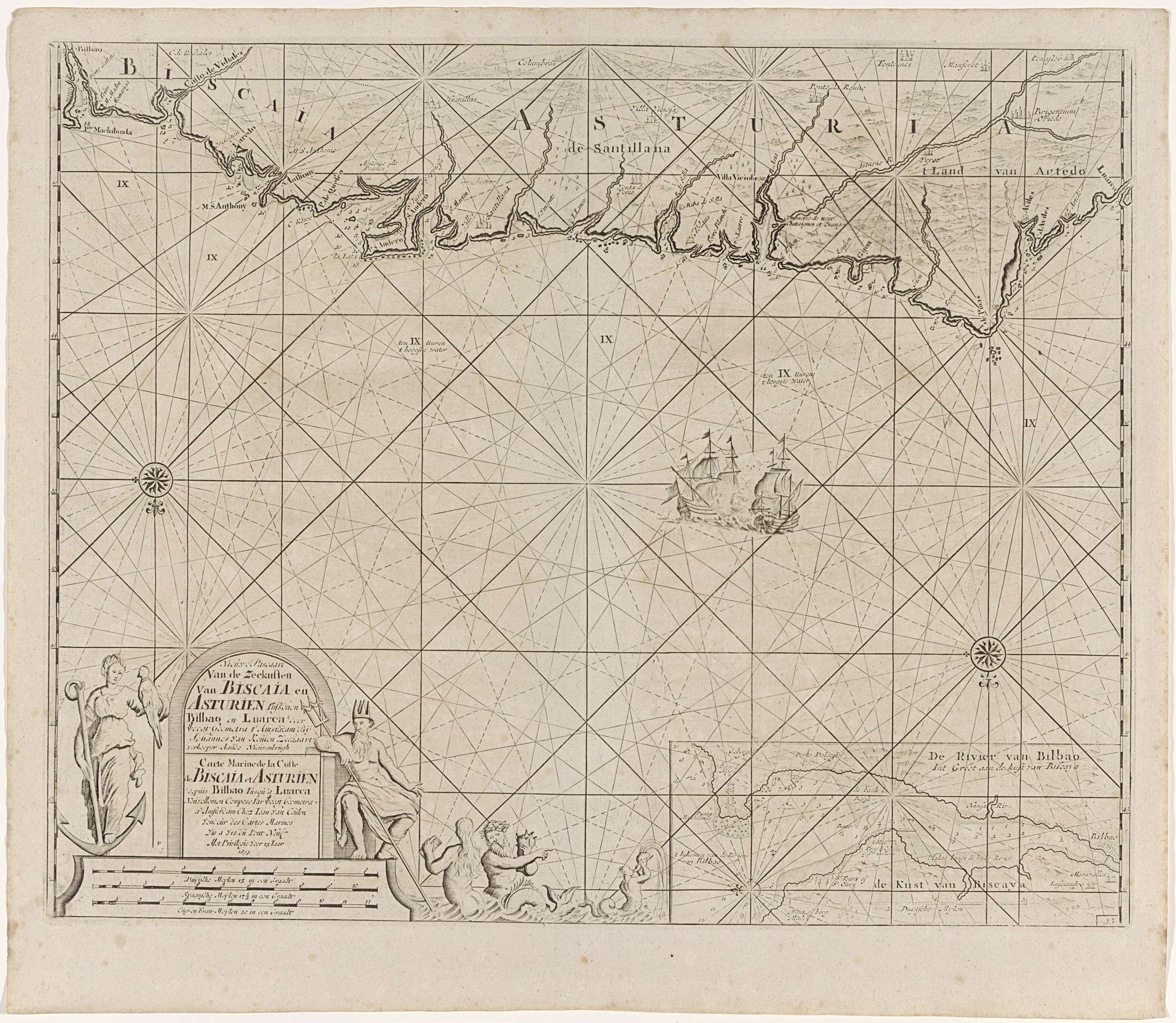 Zeekaart van een deel de Golf van Biskaje bij Bilbao