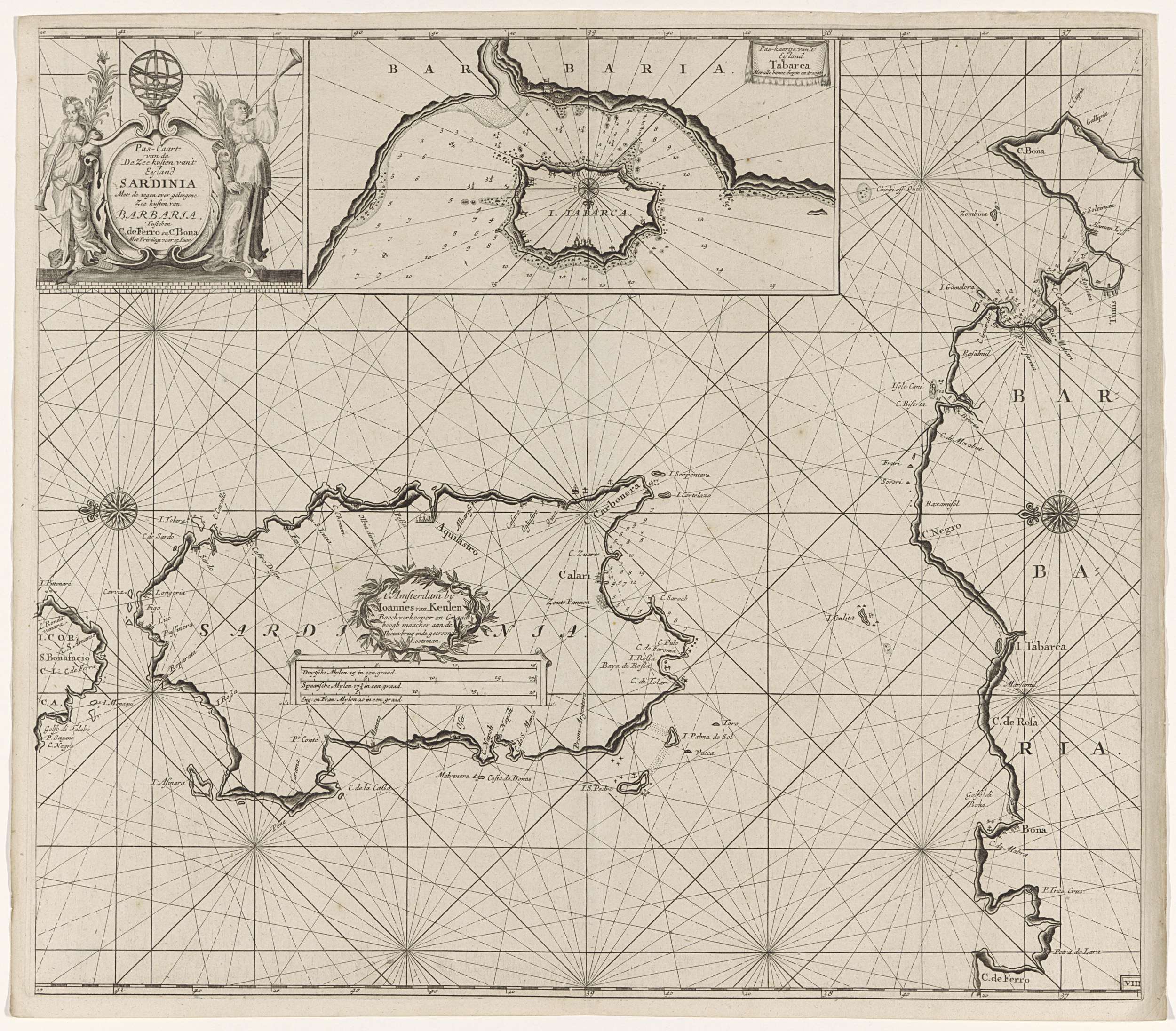 Zeekaart van het eiland Sardinië en een deel van de ...
