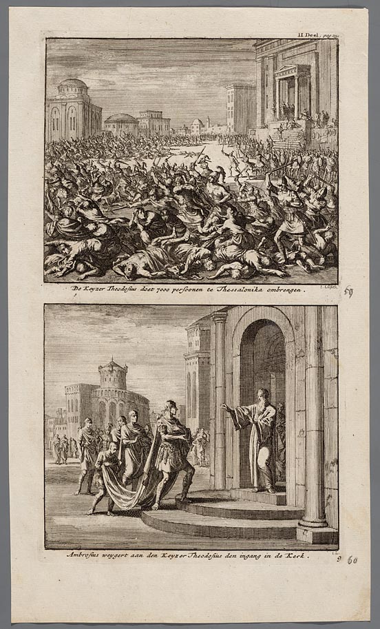 De keyzer Theodosius doet 7000 persoonen te Thessalo...