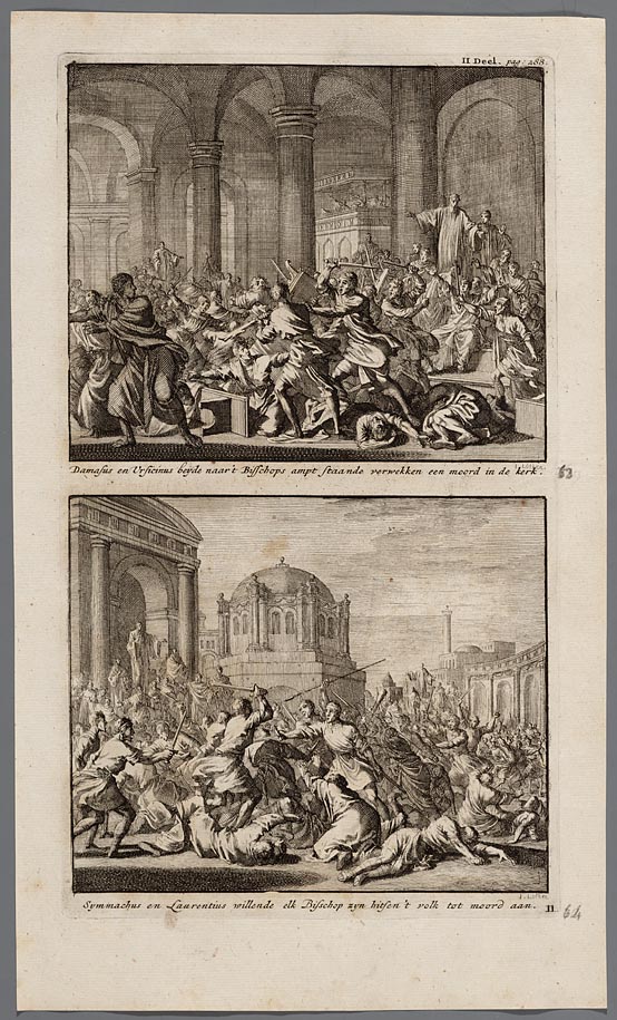 Damasus en Vrsicinus beyde naar ´t bisschops ampt st...