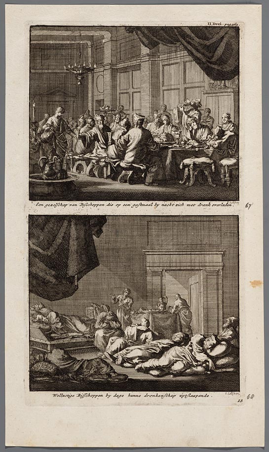 Een gezelschap van bisschoppen die op een gastmaal b...