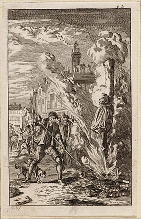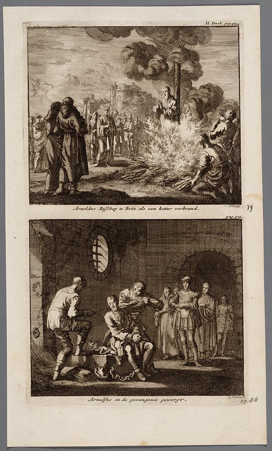 Arnoldus bisschop te Brix als een ketter verbrand, A...