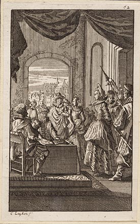 In een rijk versierd vertrek te Atrecht weigert graa...