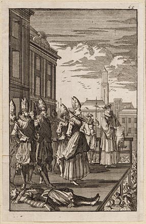 Tepronkstelling van de ter dood veroordeelde Waldenz...