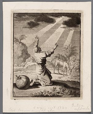 Knielende man die naar de hemel opziet en vandaar 3 ...