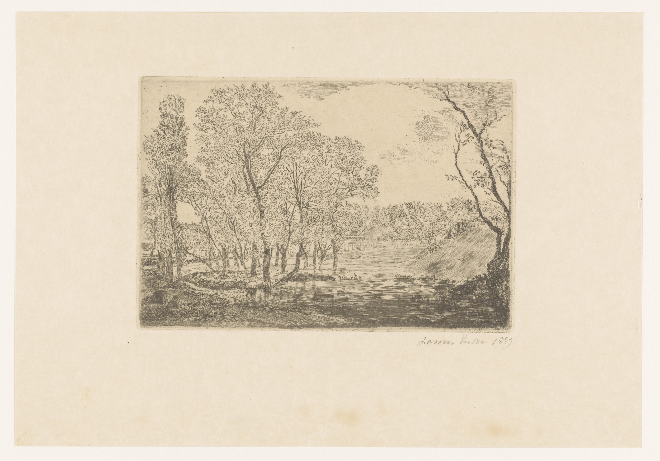 Landschap met populieren aan het water