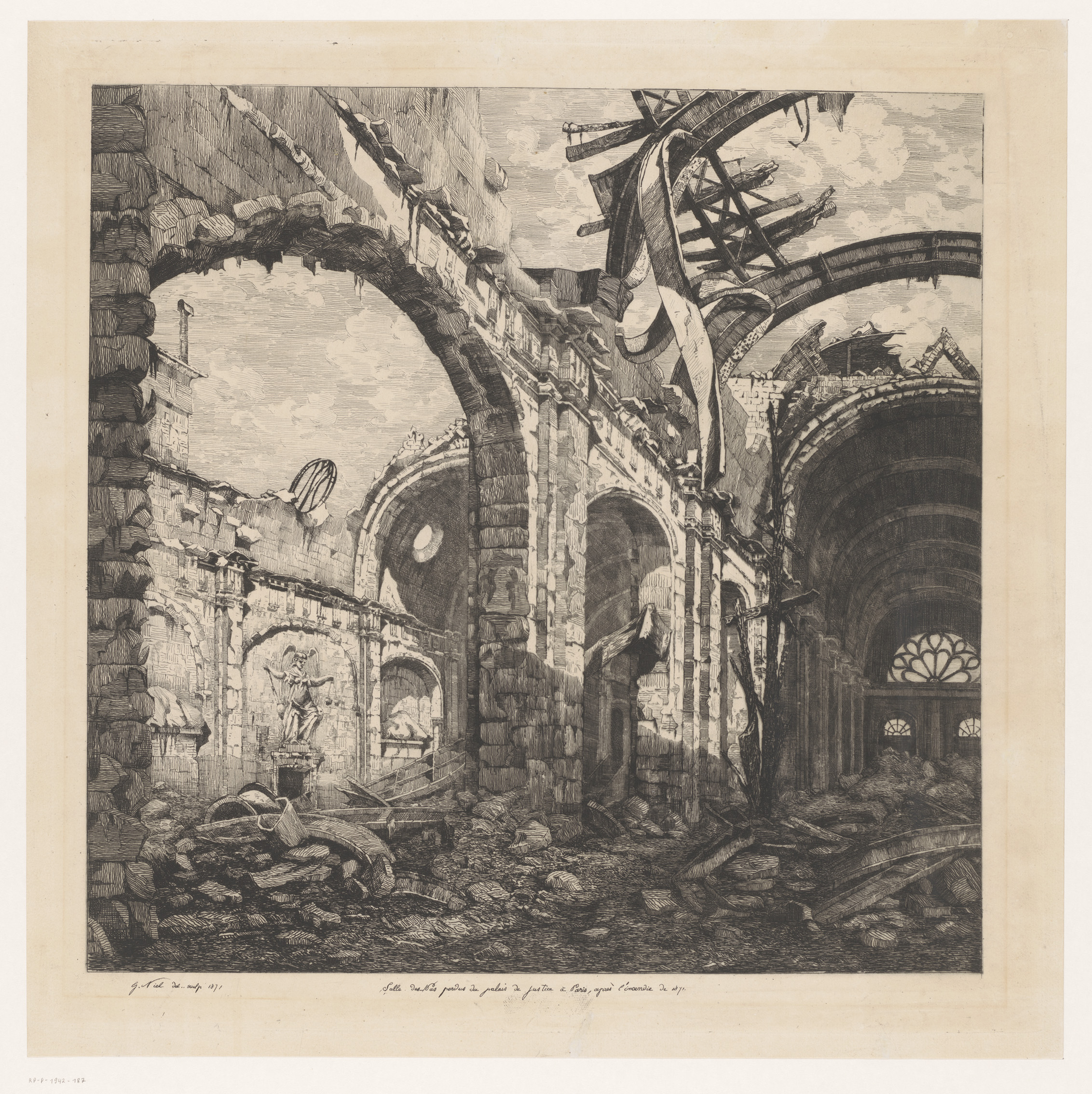 Ruïne van de Salle des pas perdus in Parijs na de br...