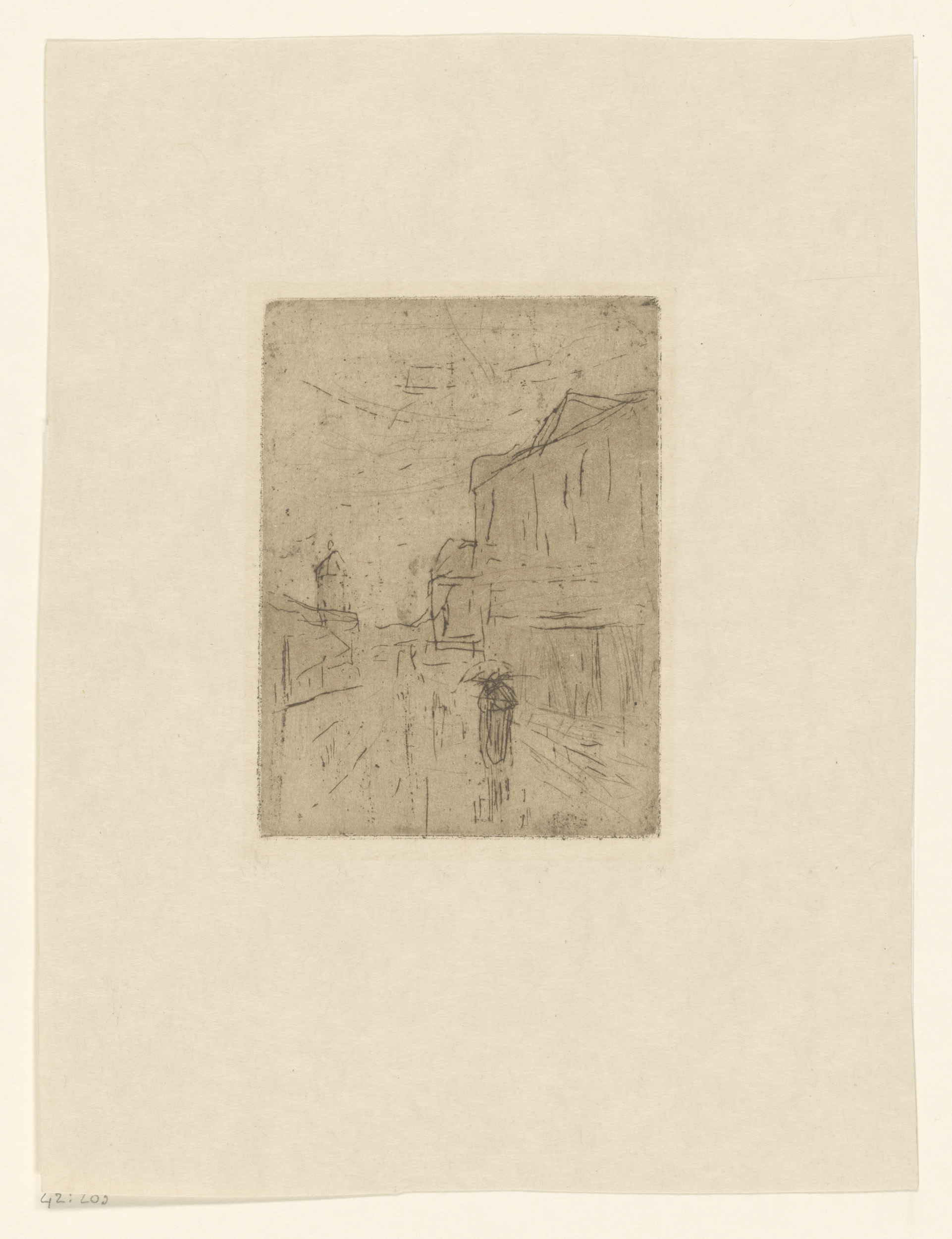 Straat met figuur met paraplu