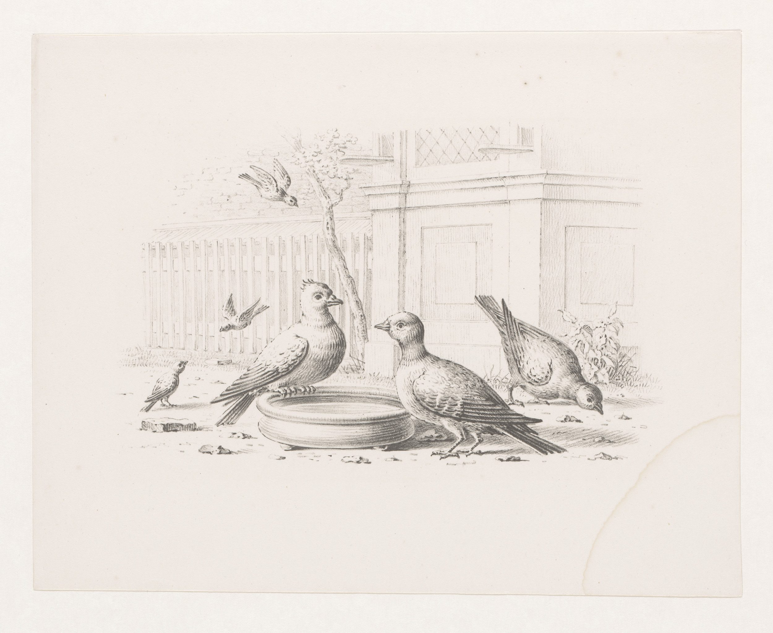 Vogels bij een drinkbak