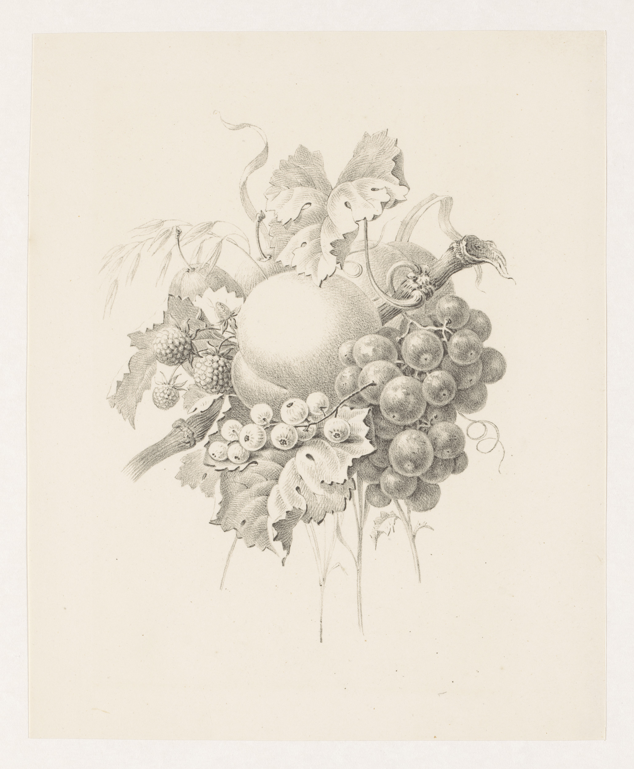 Compositie met vruchten in een omlijsting