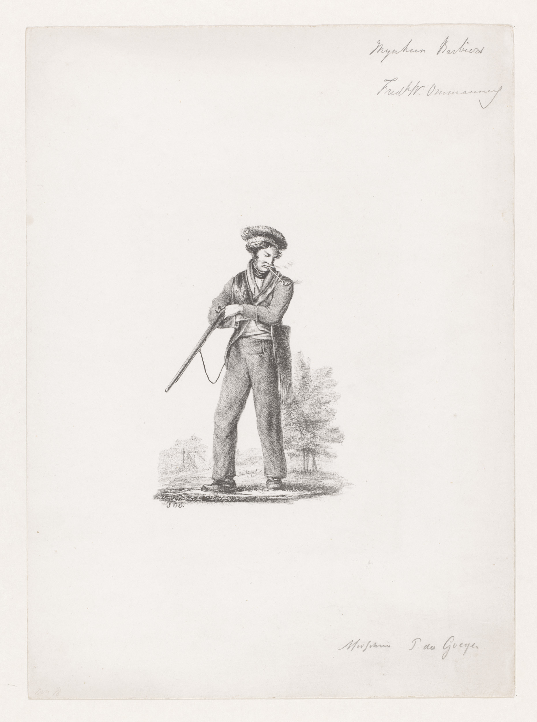 Jager met pijp in zijn mond