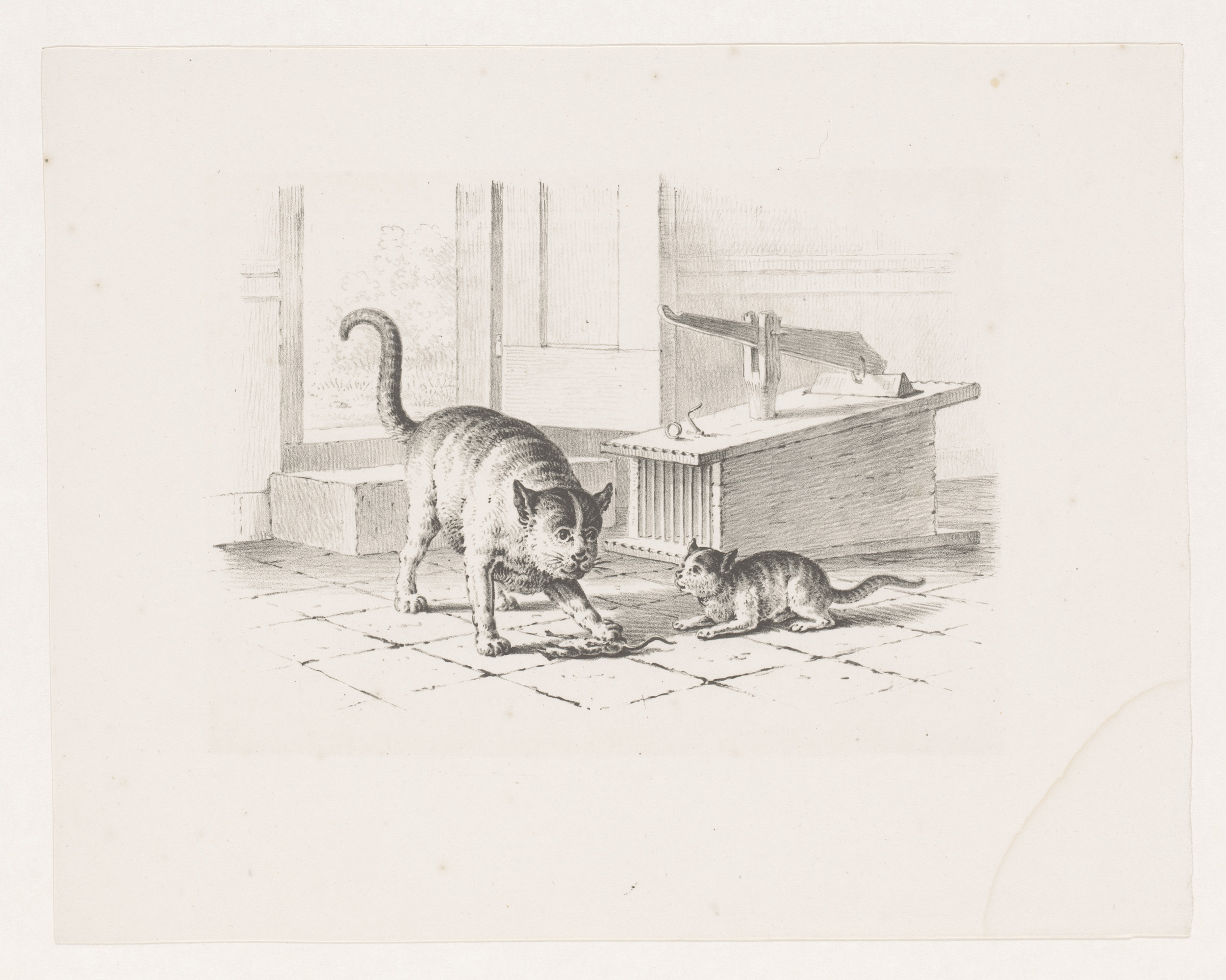Muizenval en twee katten
