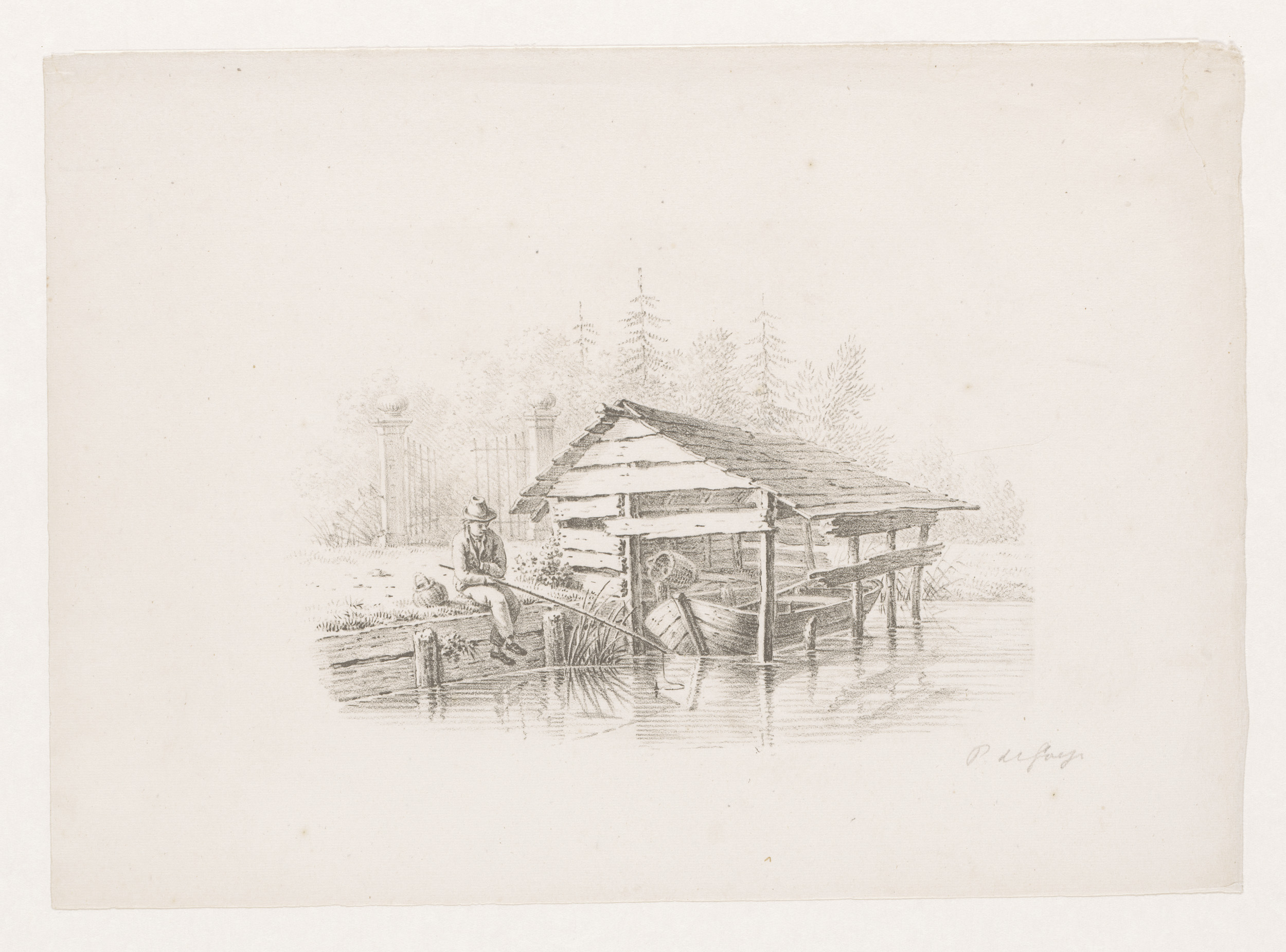 Visser bij een boothuis