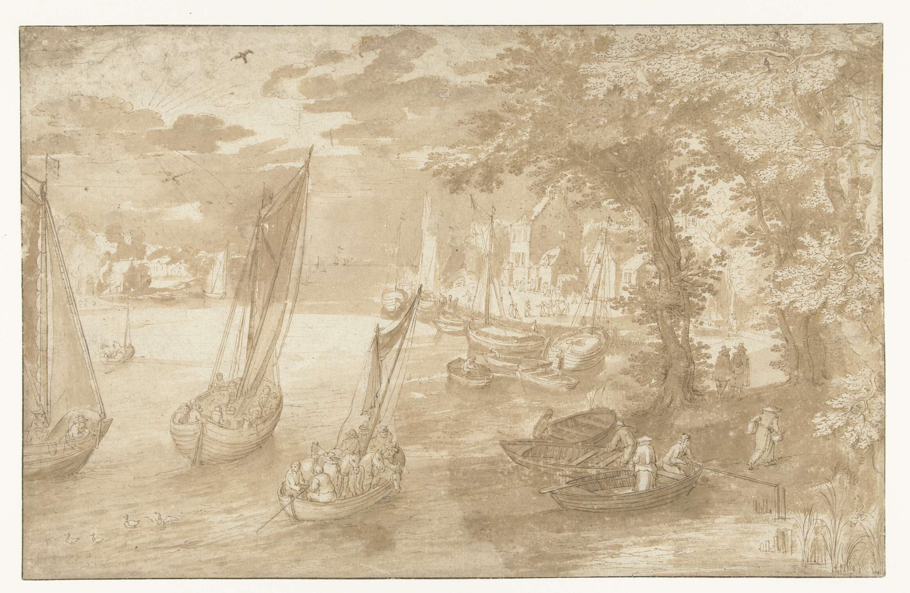 Rivierlandschap met rechts een aanlegplaats
