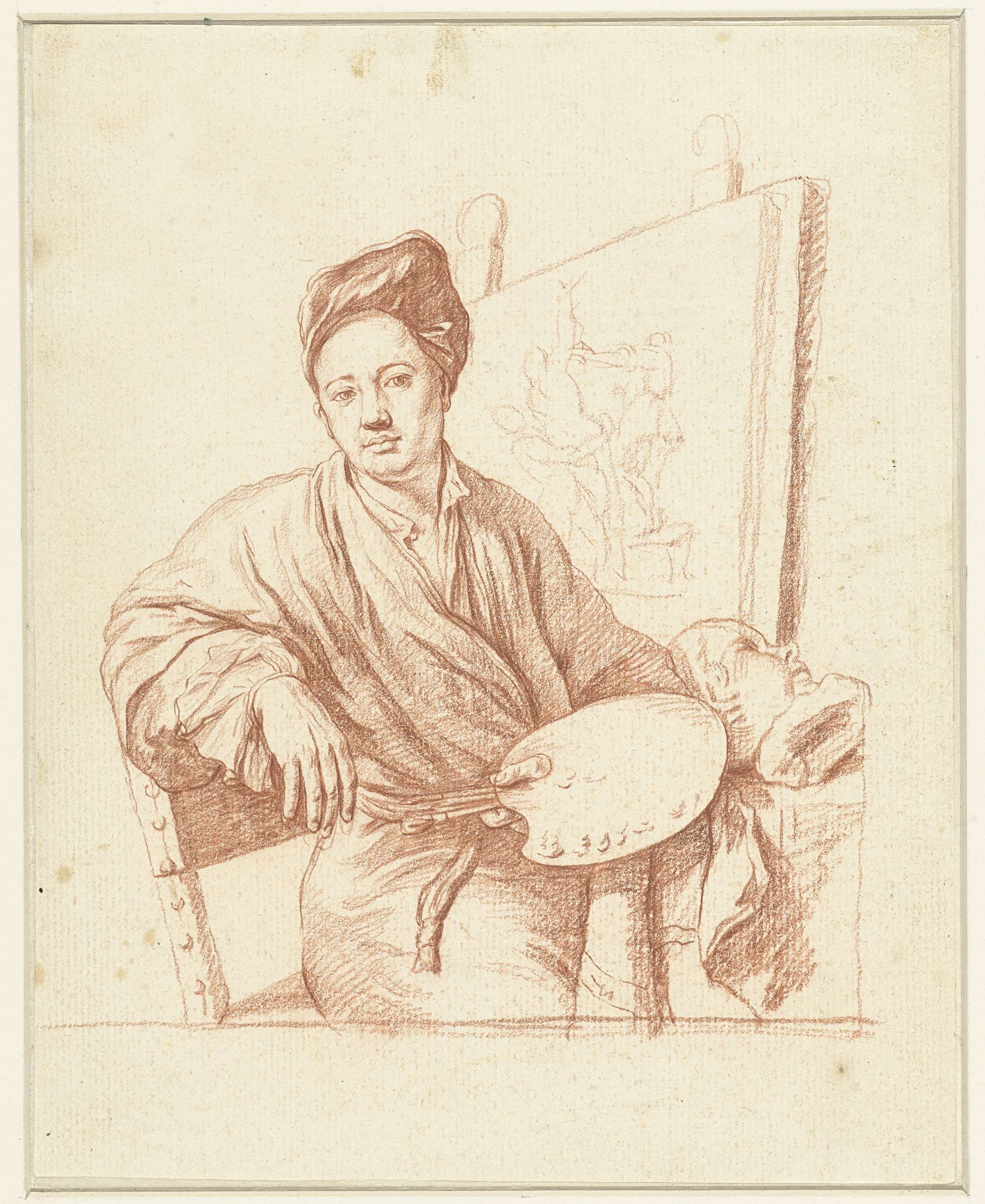 Portret van een schilder bij een ezel
