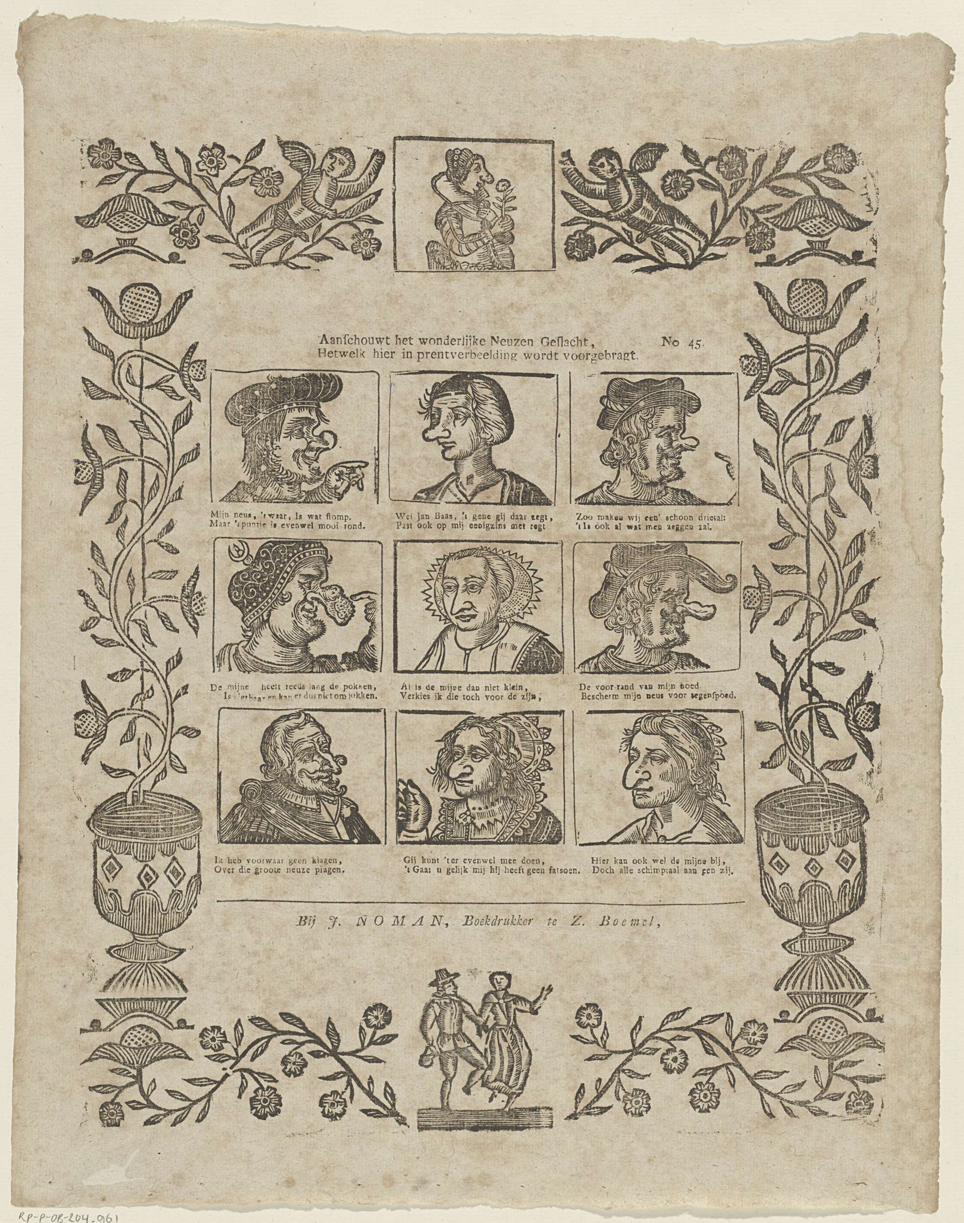 Aanschouwt het wonderlijke neuzen geslacht, / Hetwel...