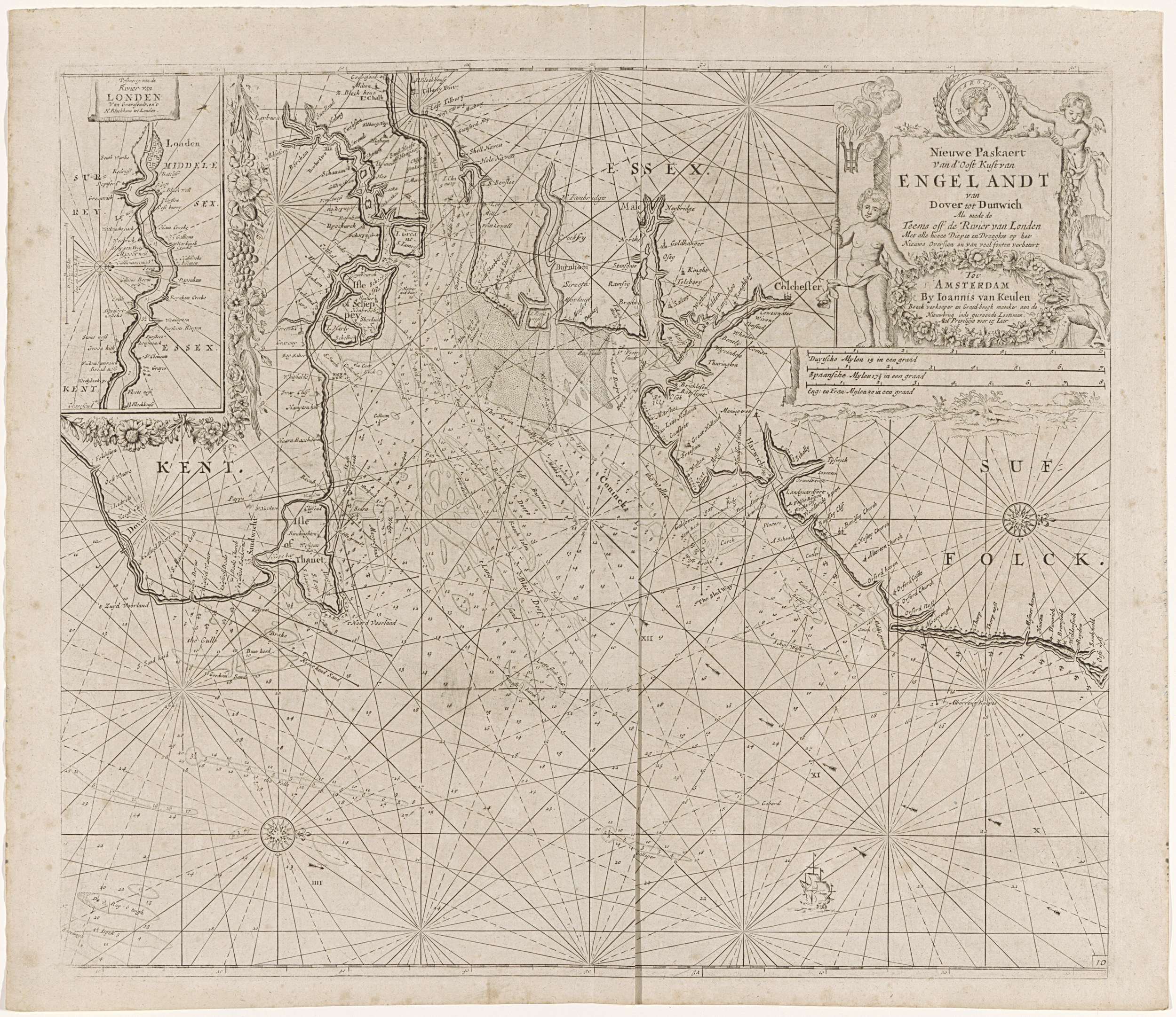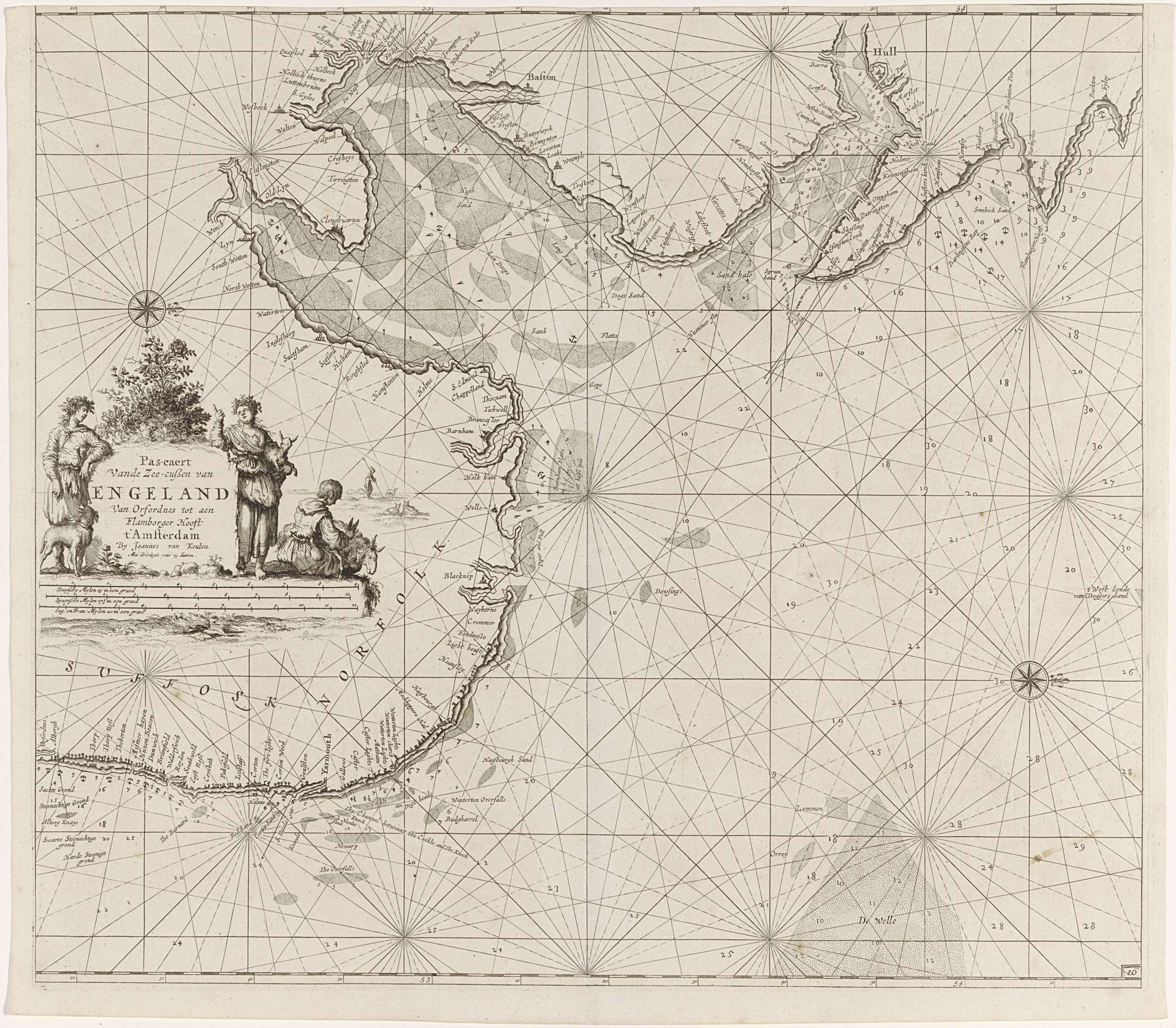 Paskaart van de oostkust van Engeland, met de mondin...