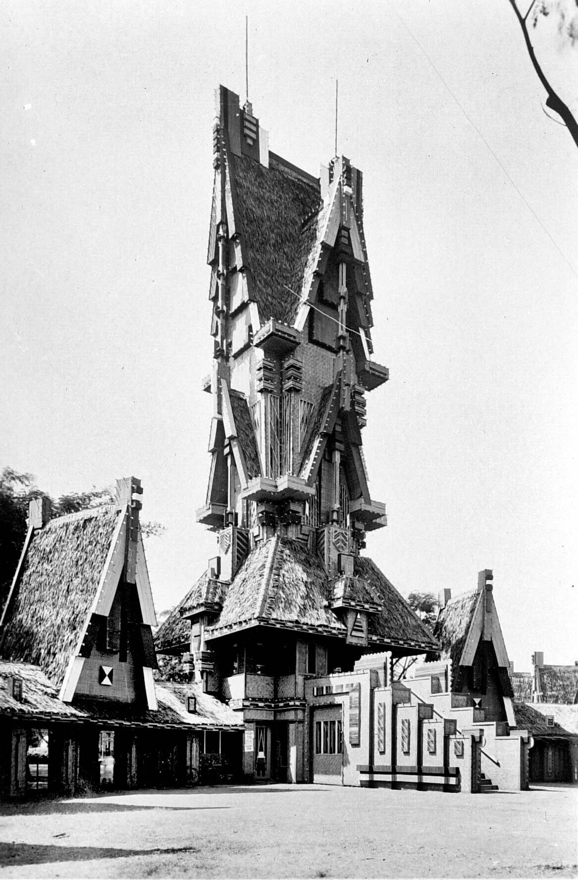De lichttoren van de jaarmarkt 'Pasar Gambir' van 19...