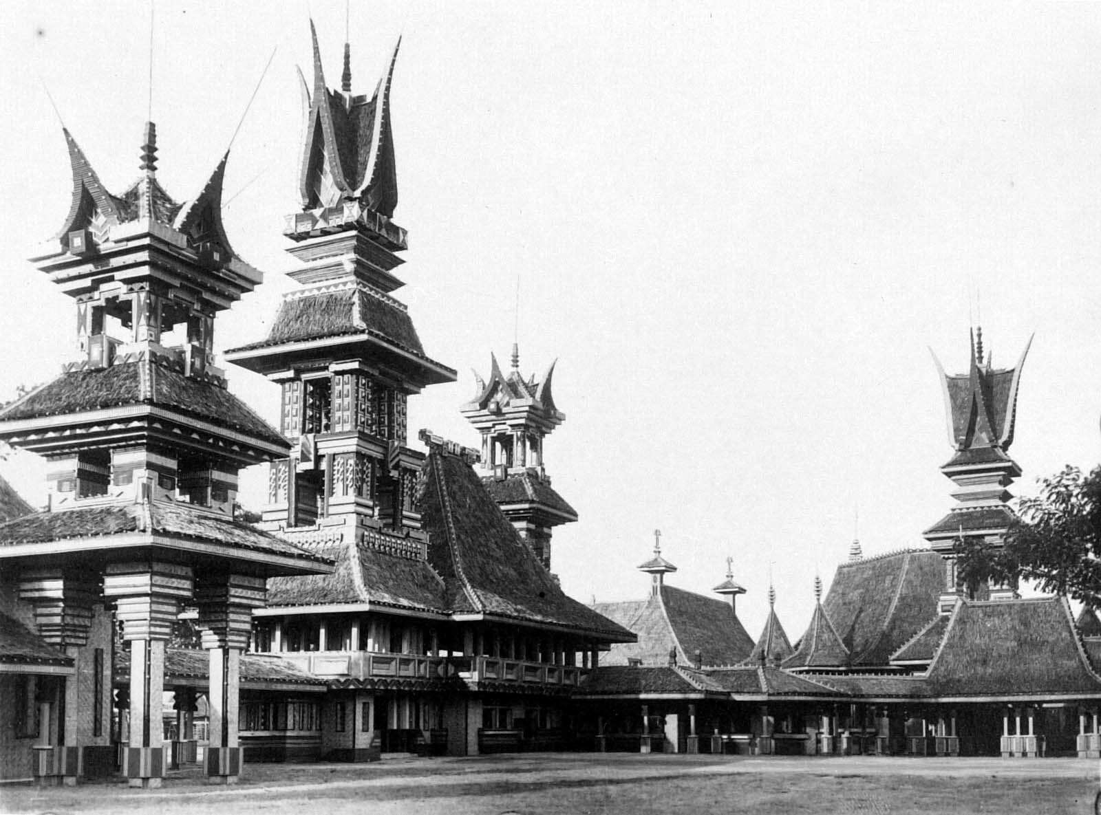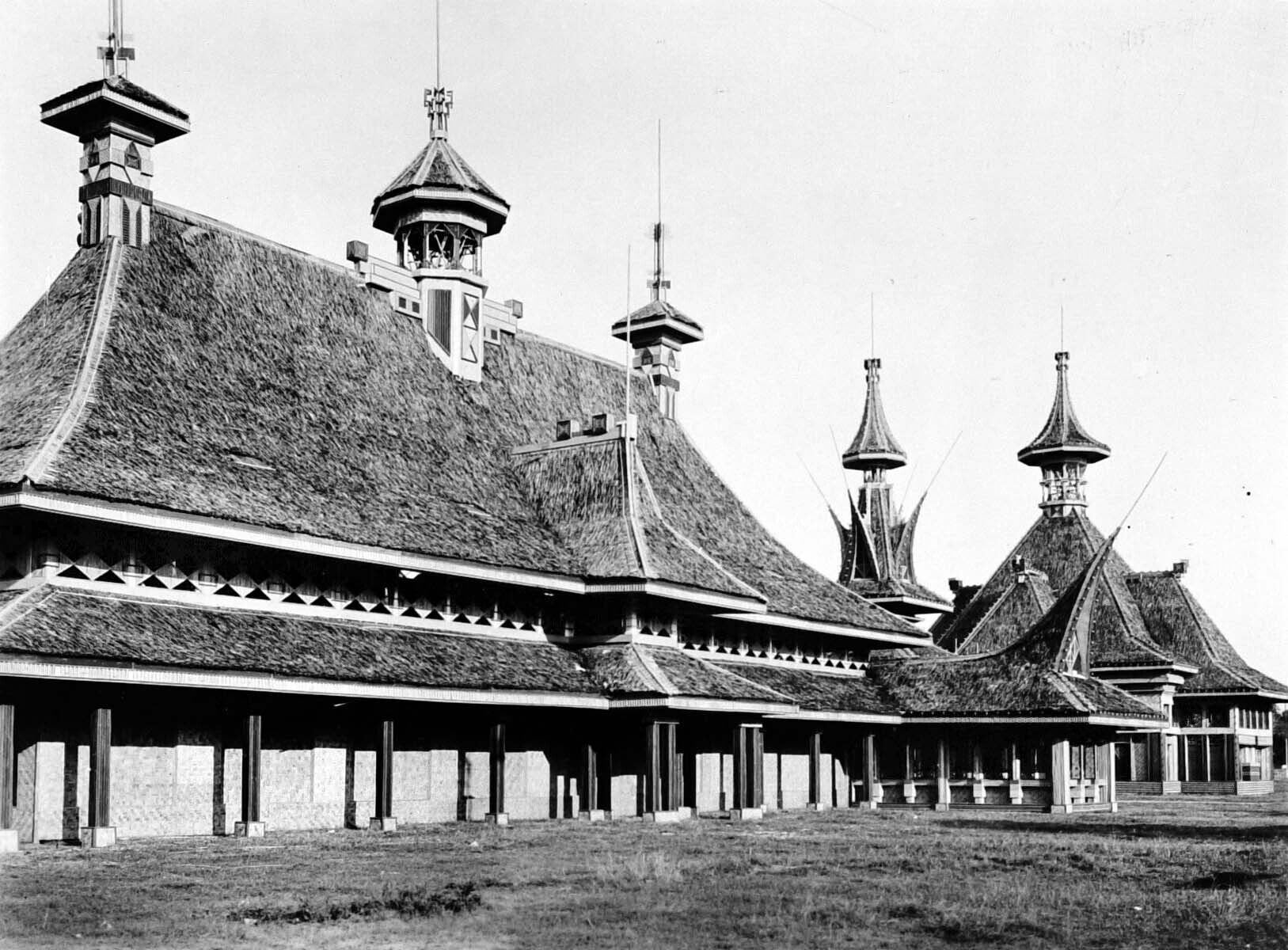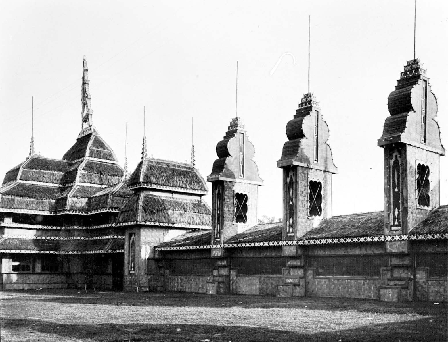 Expositiegebouwen van de jaarmarkt 'Pasar Gambir' va...