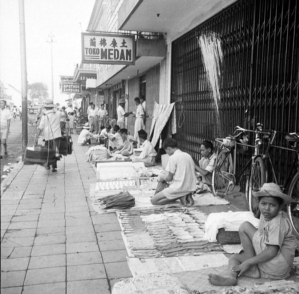 Bloemenmarkt aan het begin van de Bragaweg te Bandun...