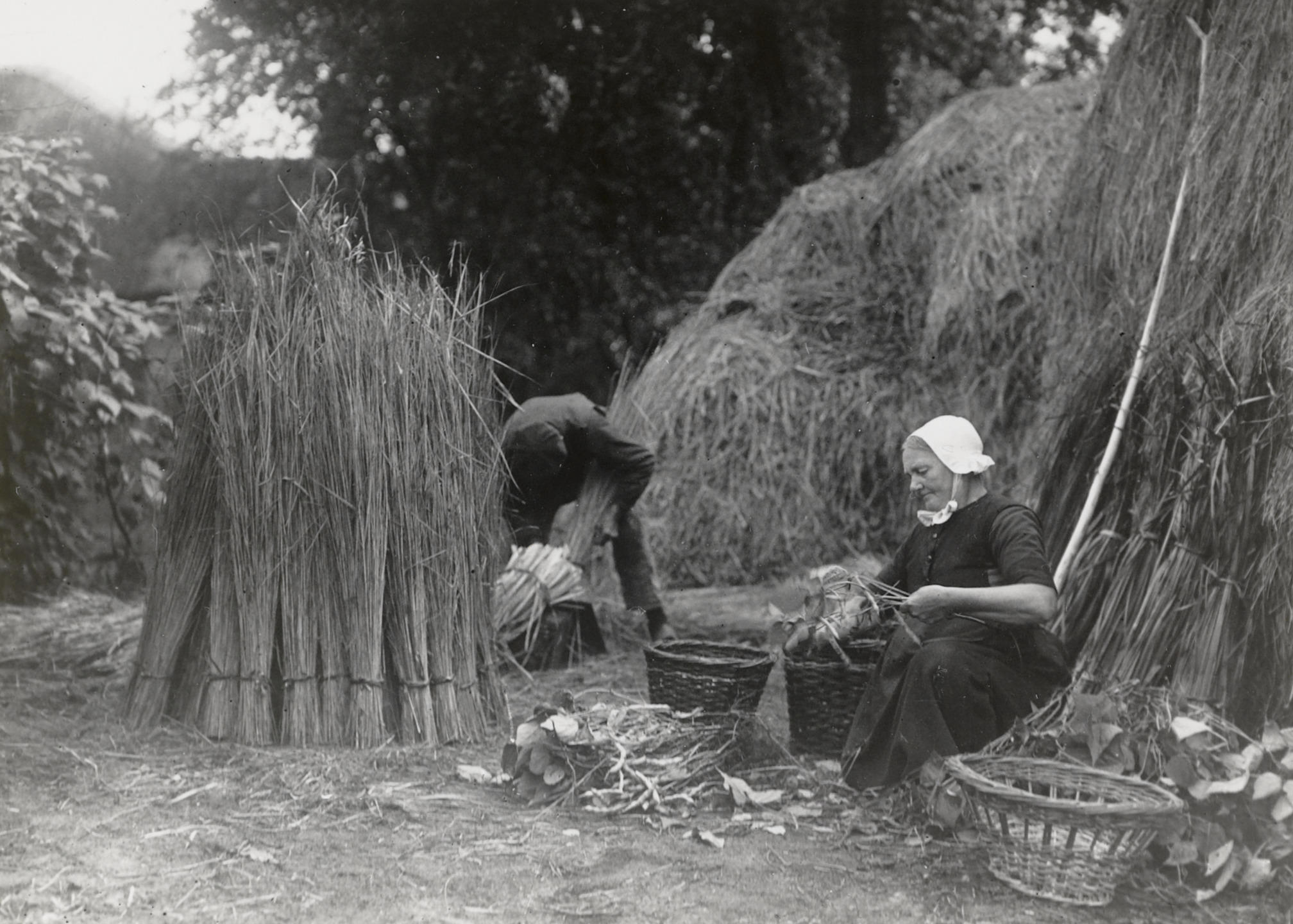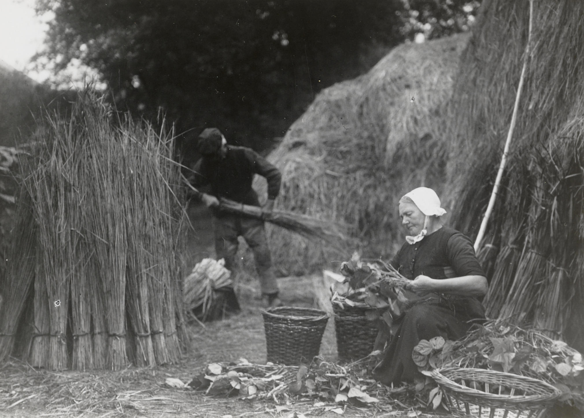 Man en vrouw in werkkleding, Giethoorn, 1917 (zwart-...