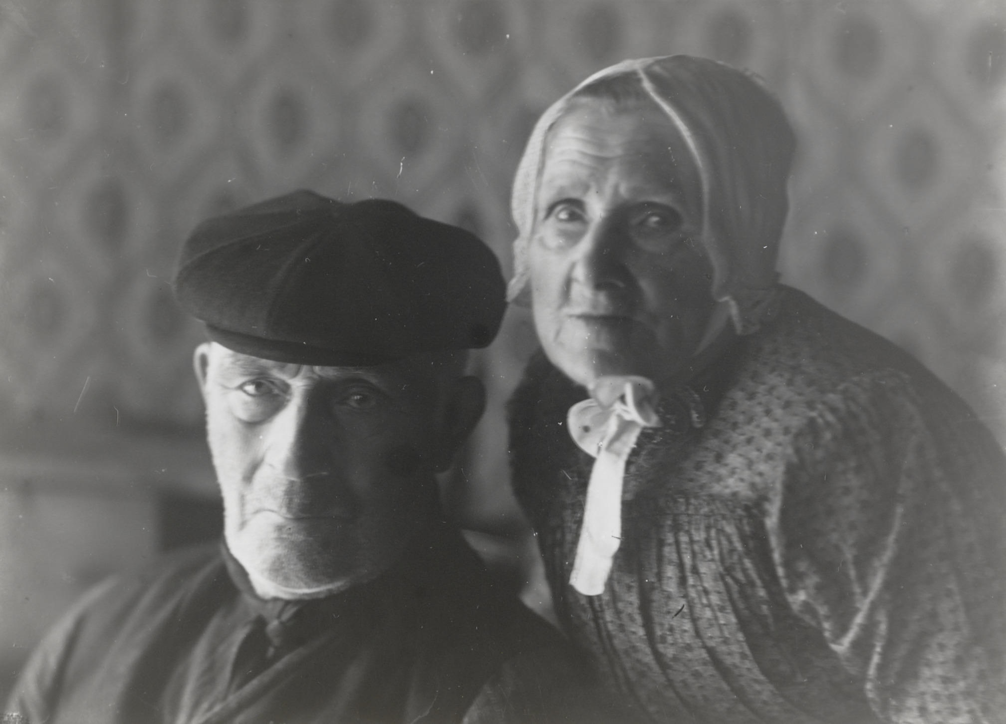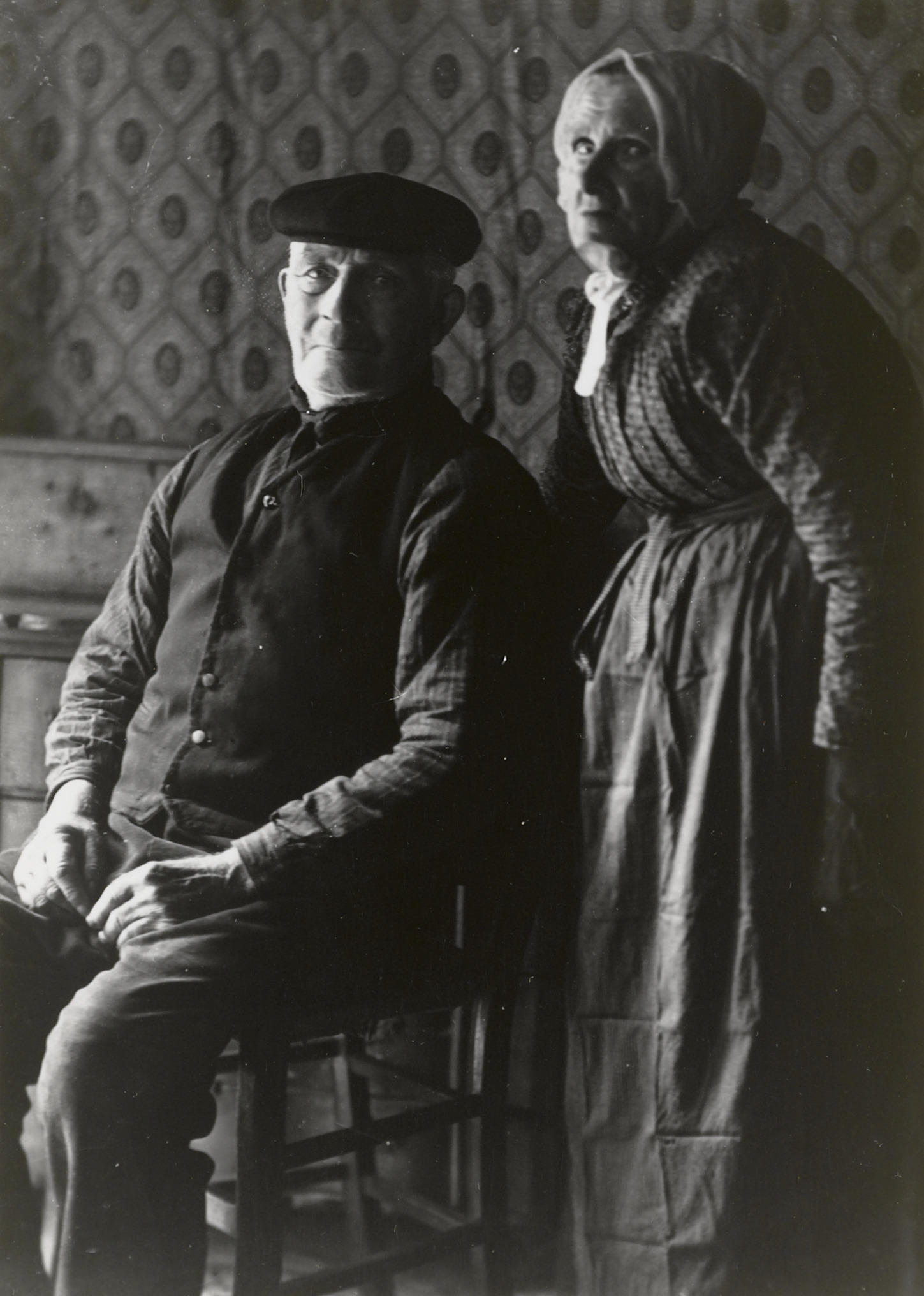 Man en vrouw in Gieterse dracht, 1917 (zwart-wit foto)