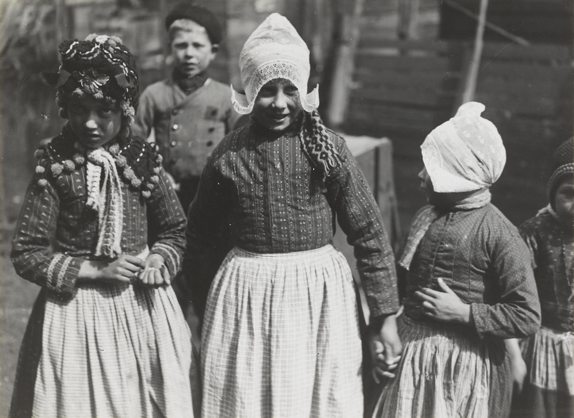 Kinderen in streekdracht uit Spakenburg, 1927 (zwart...