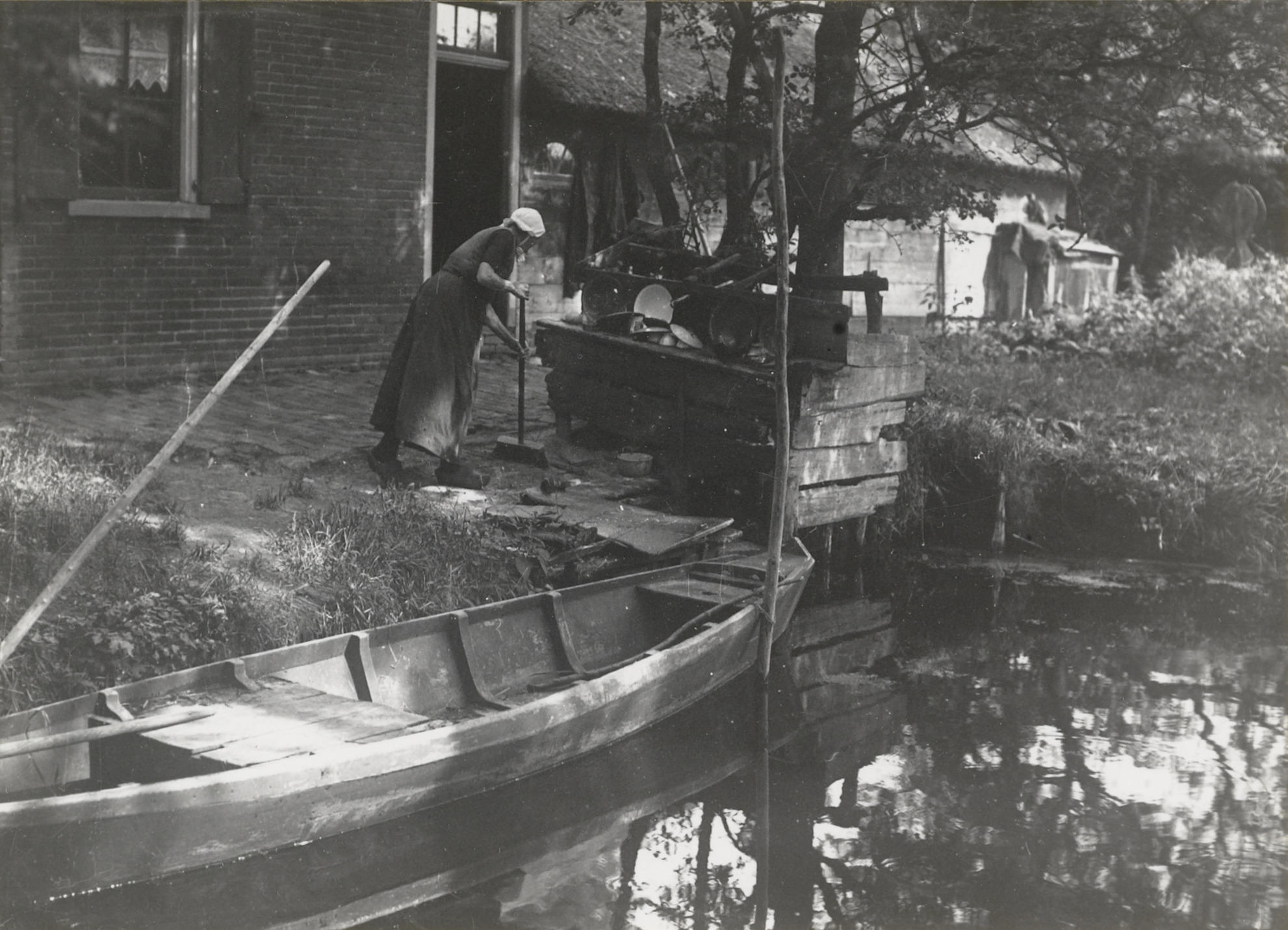Vrouw bij de wasstoep, Giethoorn, 1926 (zwart-wit foto)