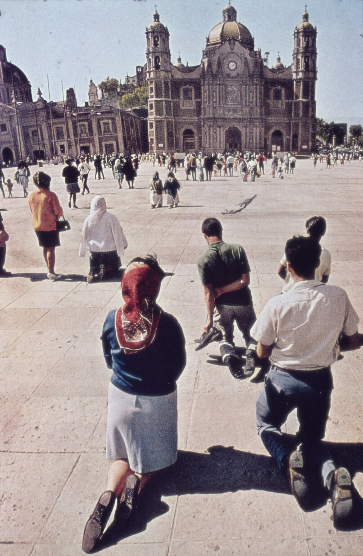penitenten/pelgrims bij de oude basiliek van Guadalupe