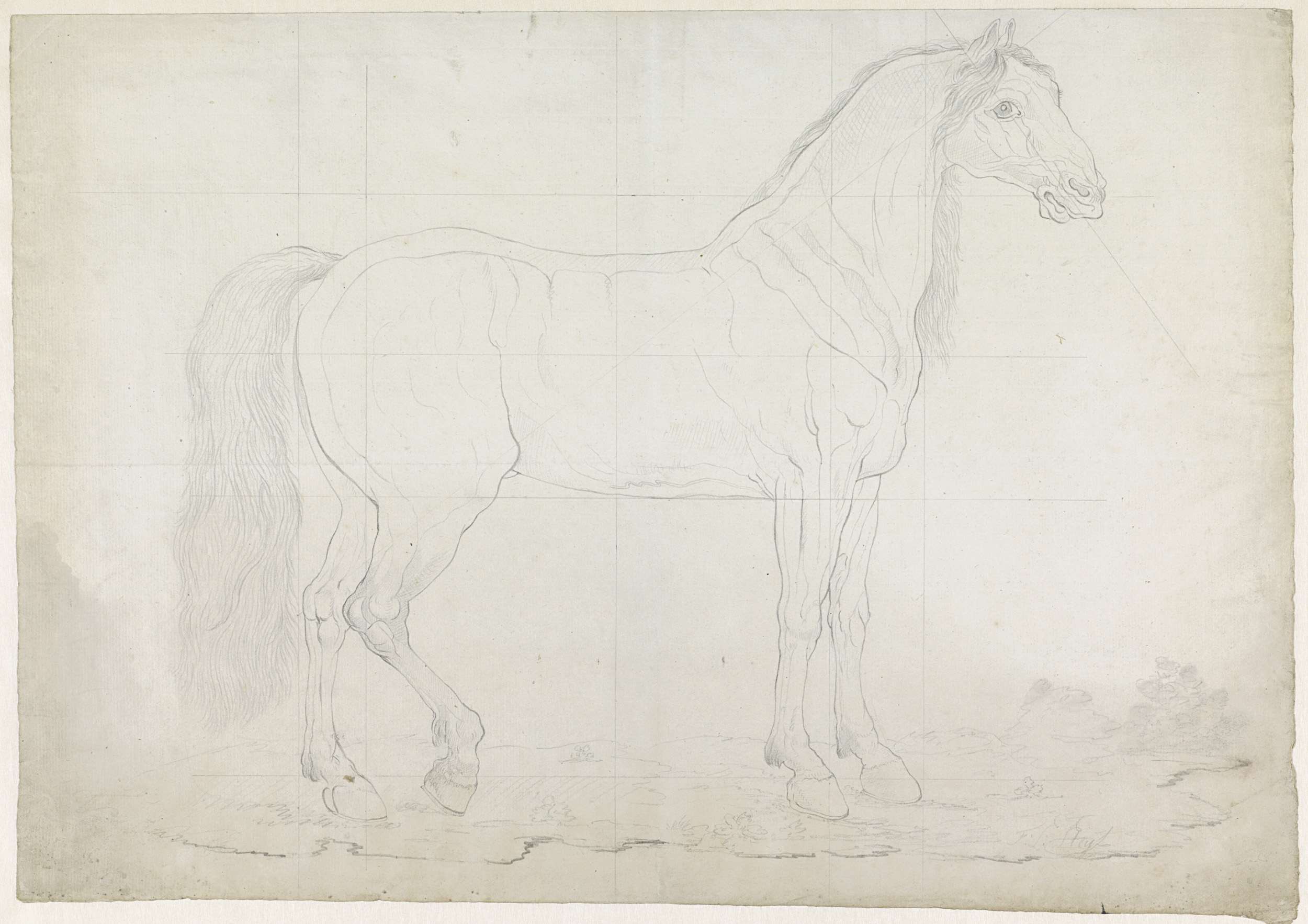 Anatomische studie van een paard, in profiel naar re...