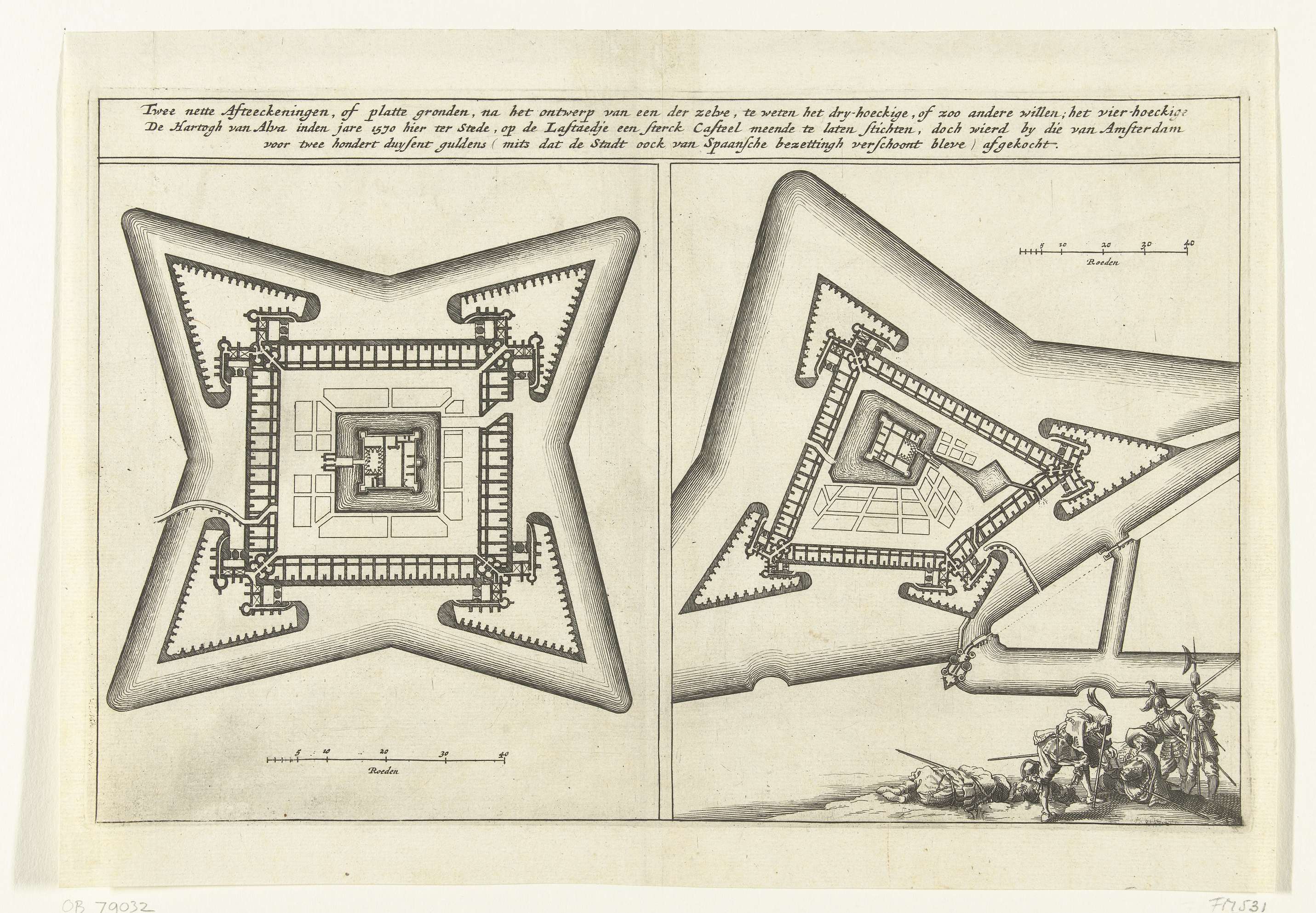 Twee plattegronden van een onuitgevoerde vesting te ...