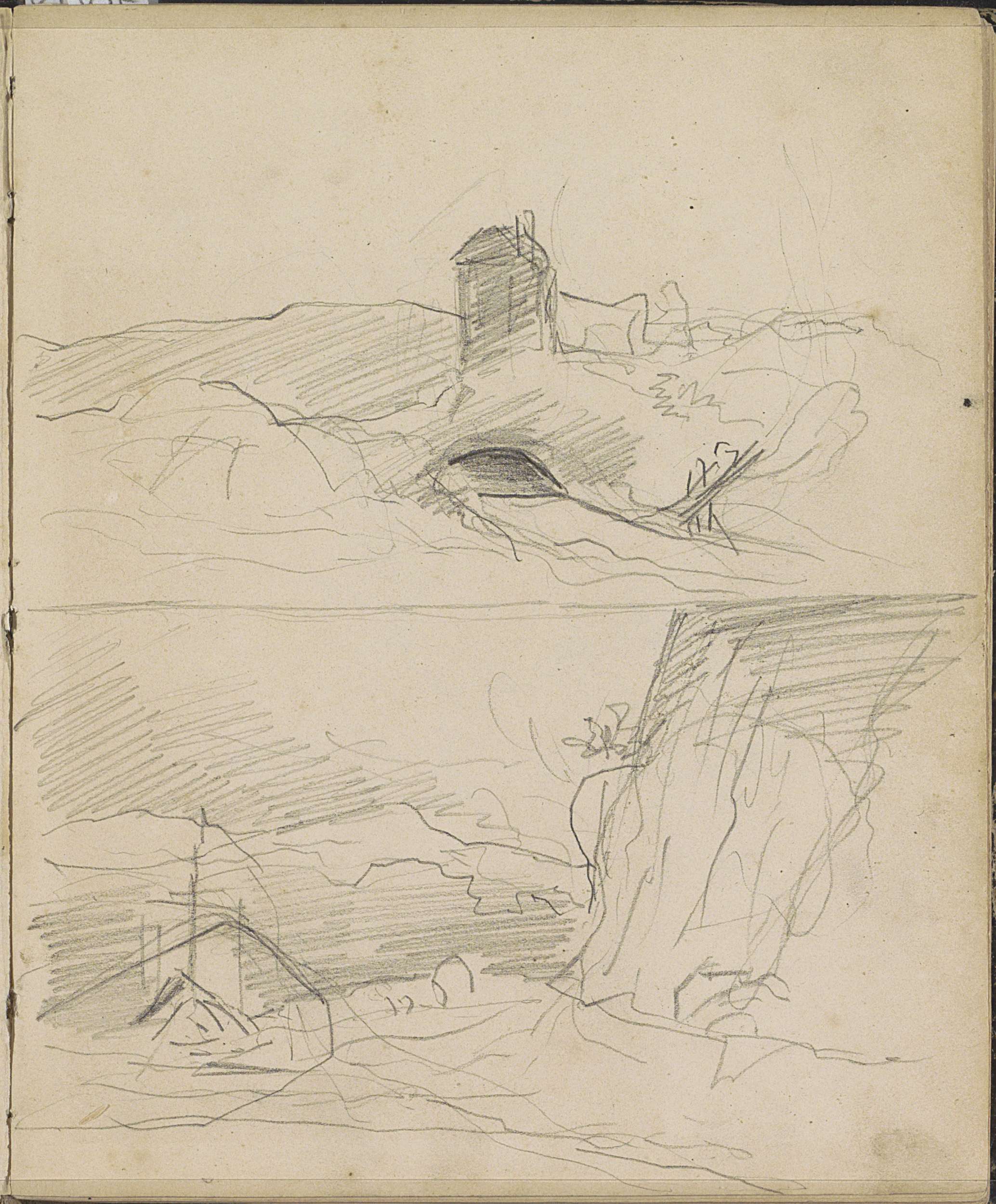 Landschappen met een toren en rotsen