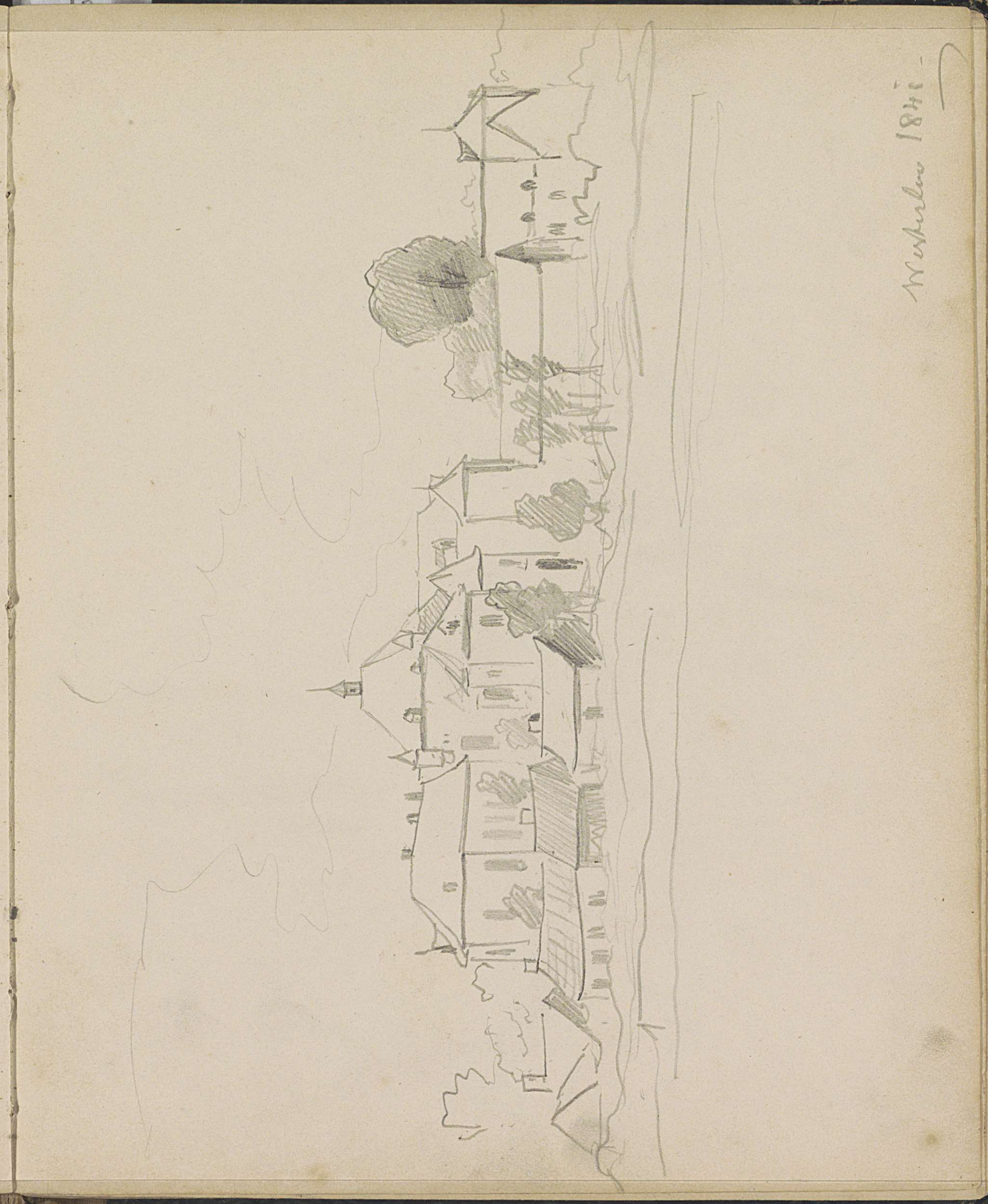 Landschap met bomen en een boerderij