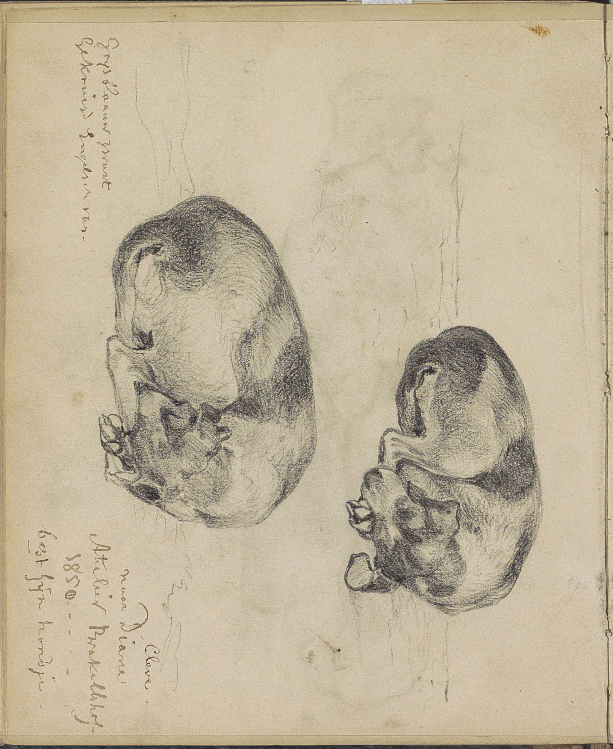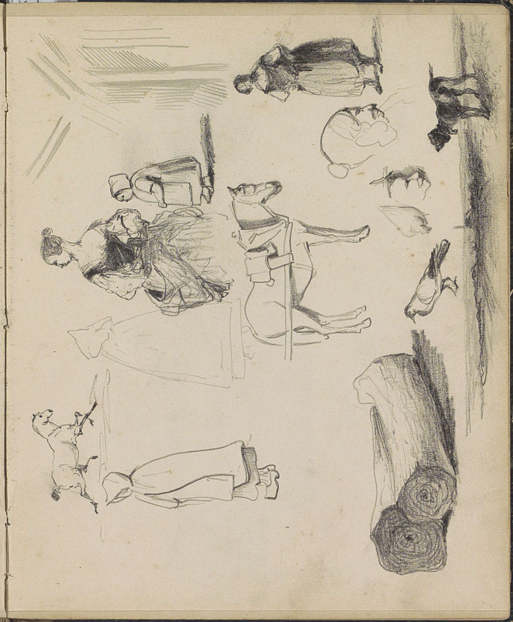 Studieblad, onder andere met paarden, vogels, een ho...