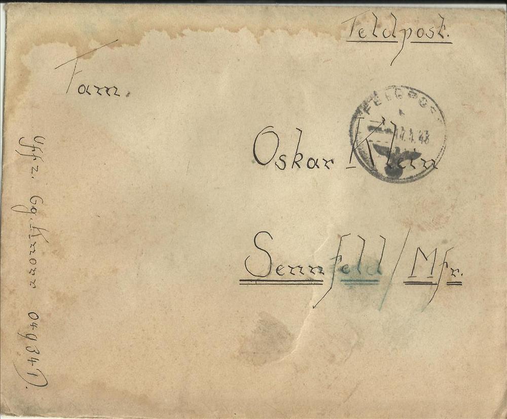Brief in enveloppe aan familie Oskar Klein te Sennfeld
