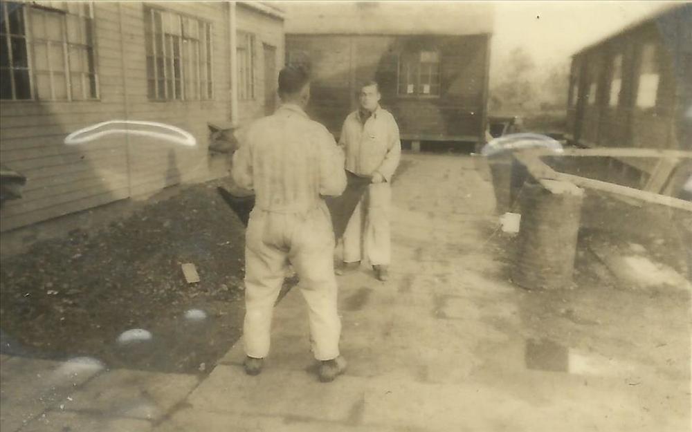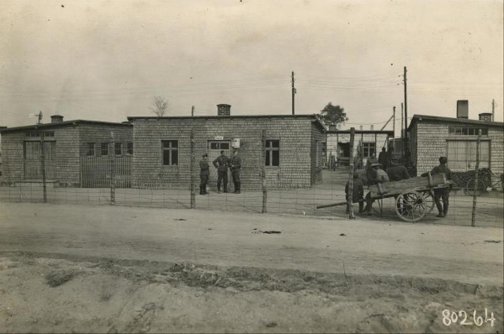 drie barakken in Stalag IVb te Mühlberg aan de Elbe