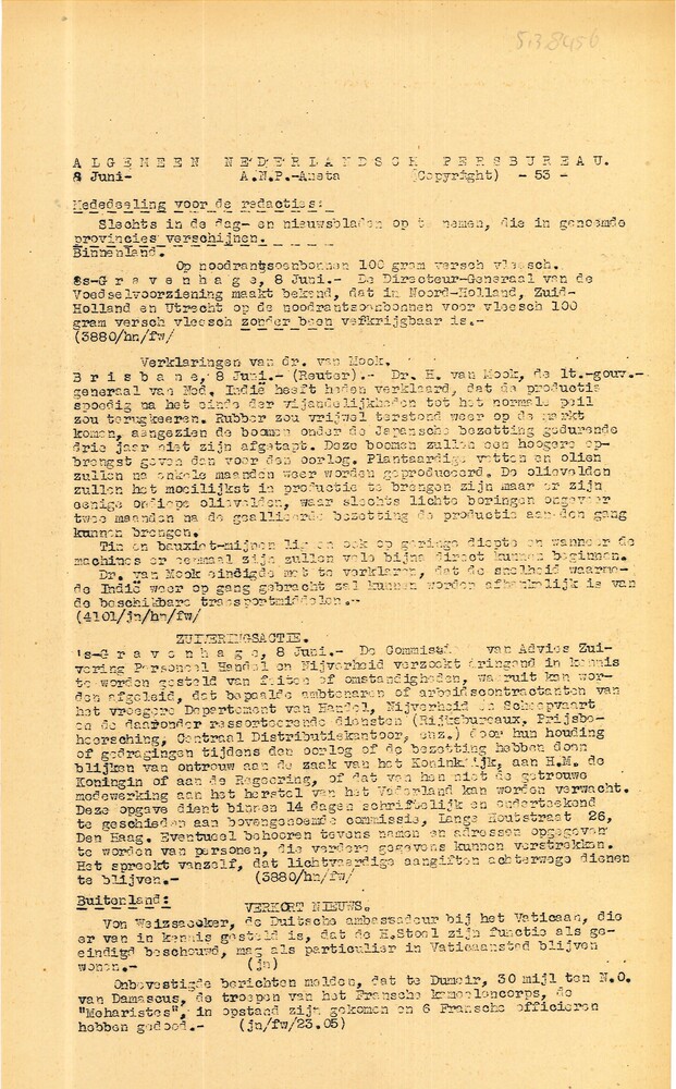 Vel: Algemeen Nederlandsch Persbureau, mededelingen,...