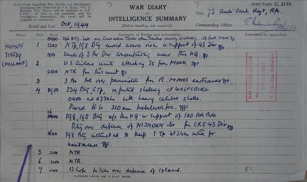 War Diary 73rd Anti Tank Regiment RA, juli 1945