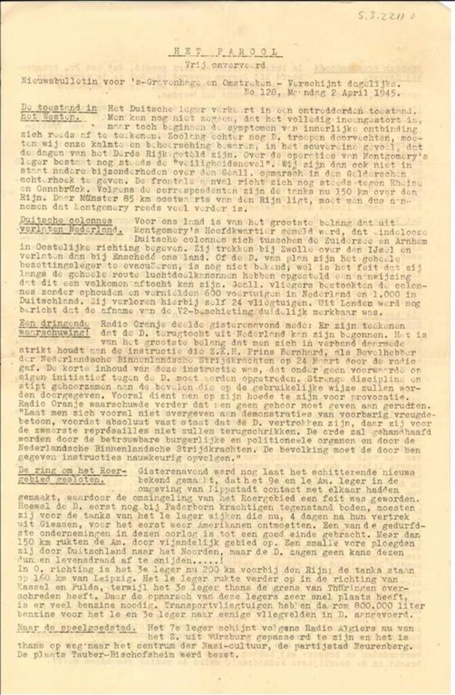 Het Parool Nieuwsbulletin voor 's-Gravenhage en omst...