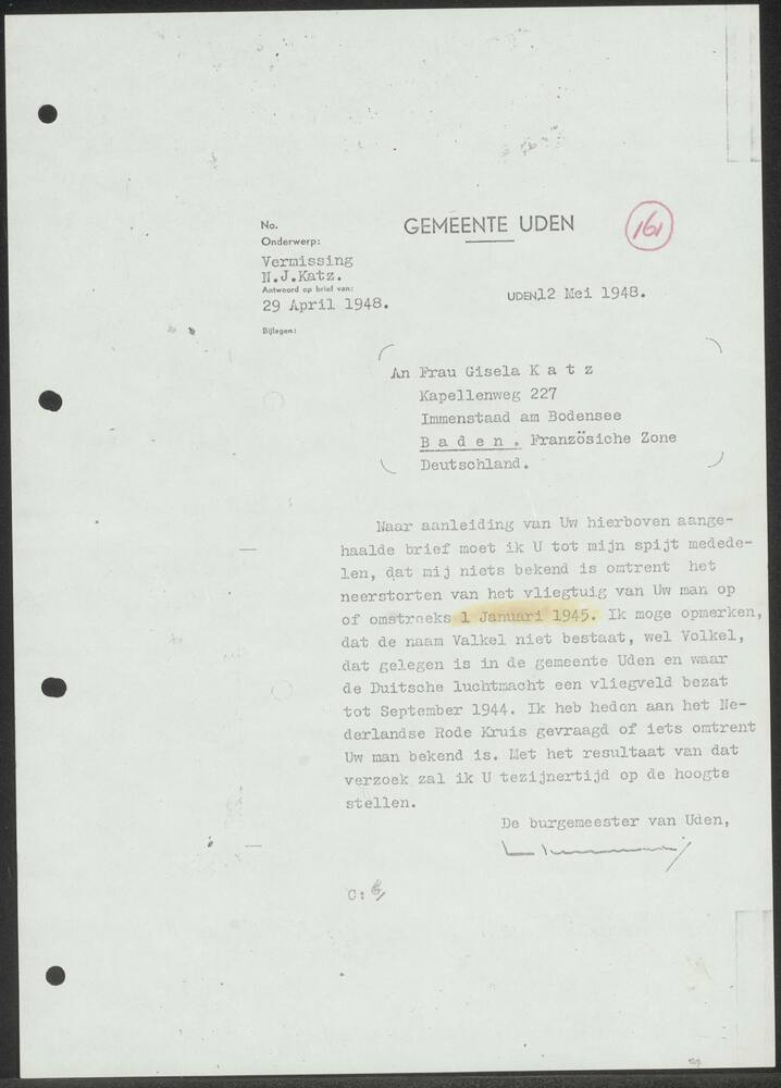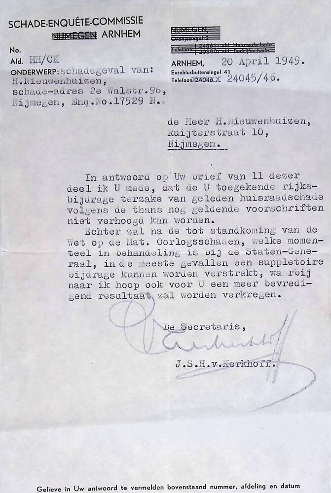 Brief van de Schade-Enquête-Commissie te Arnhem aan ...